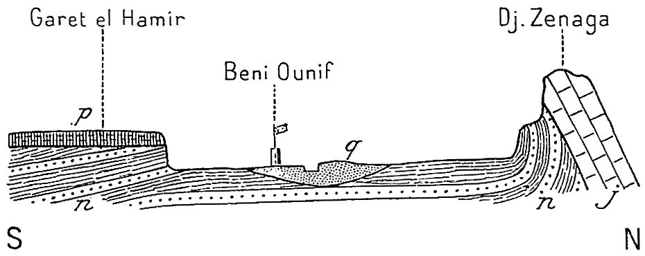 Entre le nord et le sud la nature différente des vestiges de l’âge quaternaire met une vive opposition. Dans le nord, ce sont des lits d’oueds profondément gravés ; le chapitre II du présent volume est une monographie d’un fleuve quaternaire. Dans le sud, au contraire, les traces les plus apparentes qu’a laissées le quaternaire sont des dunes fossiles. Ceci revient à dire que dans le nord le désert a succédé à la steppe et dans le sud la steppe au désert : un gros fait qui n’a jamais été mis en lumière.