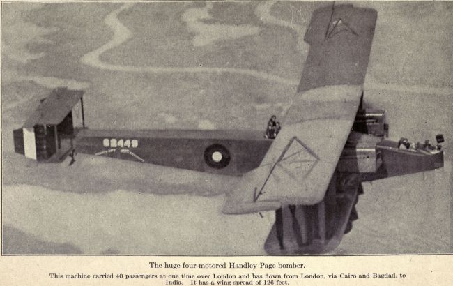 | The huge four-motored Handley Page bomber | 64 |