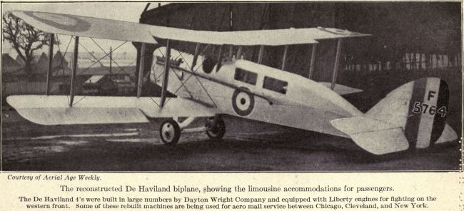 | The reconstructed De Haviland biplane, showing the limousine accommodations for passengers | 146 |