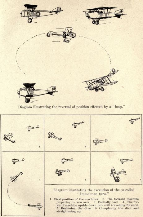 | Diagrams illustrating the reversal of position effected by a “loop” and the execution of the so-called “Immelman turn” | 158 |