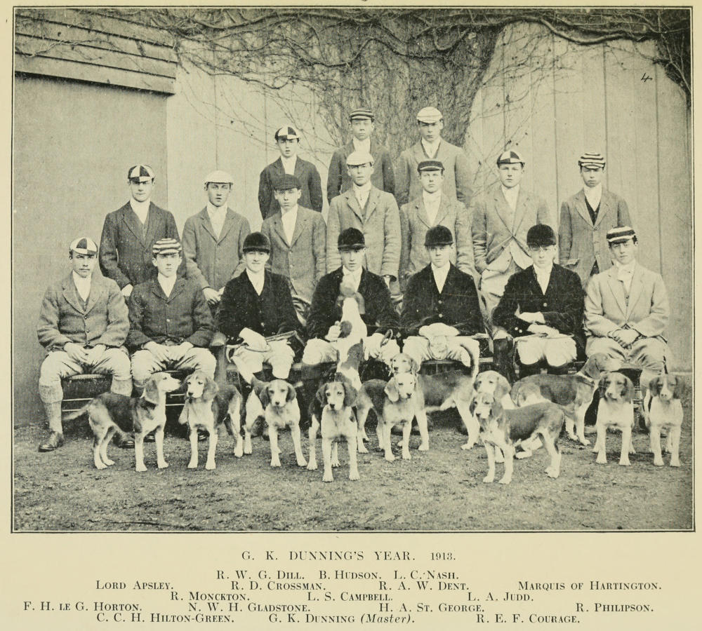 [6] Notable exceptions were G. W. Barclay (killed in the War), son of Mr. E. E. Barclay, M.F.H. the Puckeridge, and K. S. M. Gladstone, who had had a pack of his own in Essex before he went to Eton. These two Masters of the E.C.H. undoubtedly did a very great deal to bring the pack to a high standard.