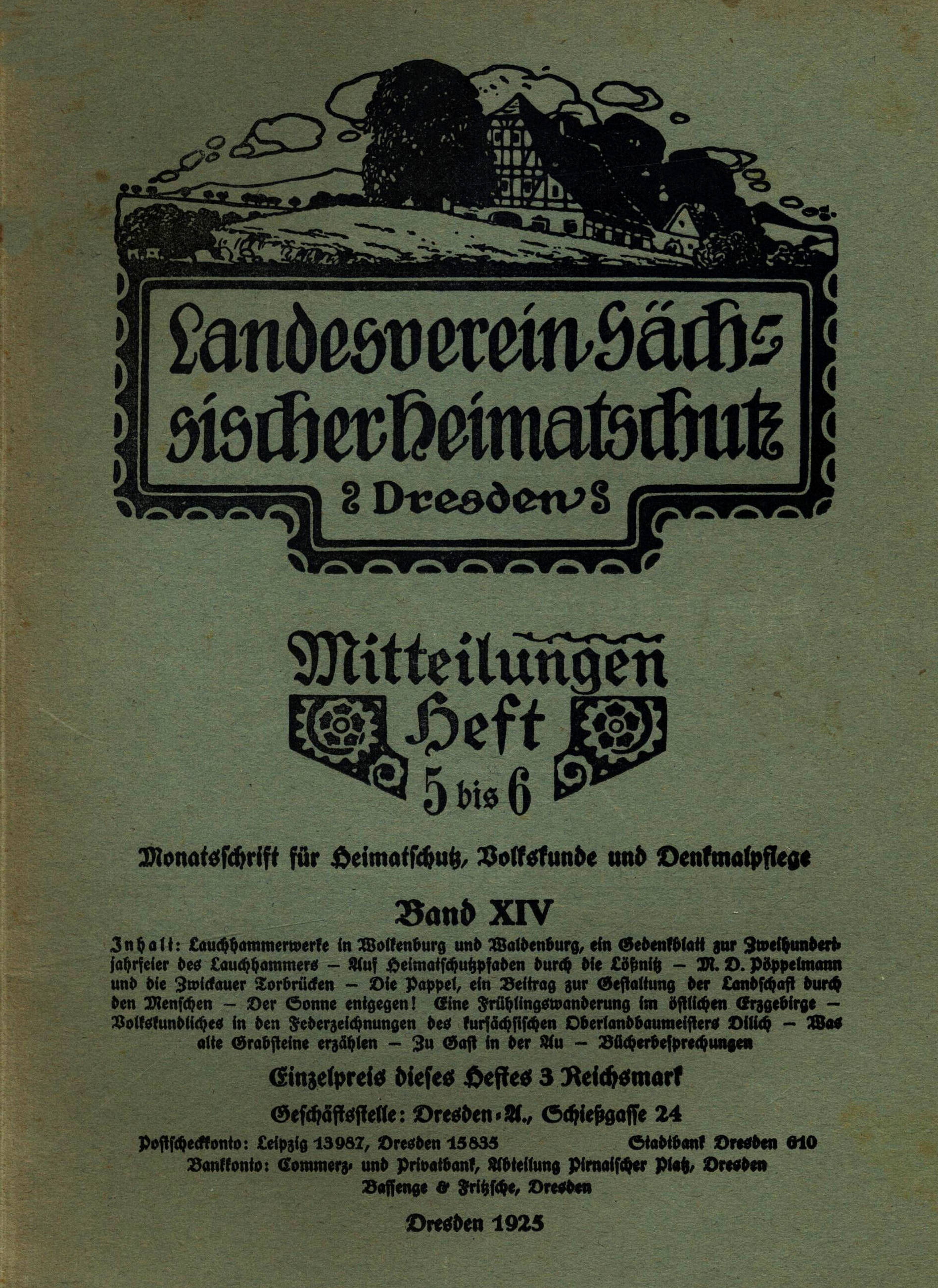 Inhalt: Lauchhammerwerke in Wolkenburg und Waldenburg, ein Gedenkblatt zur Zweihundertjahrfeier des Lauchhammers – Auf Heimatschutzpfaden durch die Lößnitz – M. D. Pöppelmann und die Zwickauer Torbrücken – Die Pappel, ein Beitrag zur Gestaltung der Landschaft durch den Menschen – Der Sonne entgegen! Eine Frühlingswanderung im östlichen Erzgebirge – Volkskundliches in den Federzeichnungen des kursächsischen Oberlandbaumeisters Dilich – Was alte Grabsteine erzählen – Zu Gast in der Au – Bücherbesprechungen