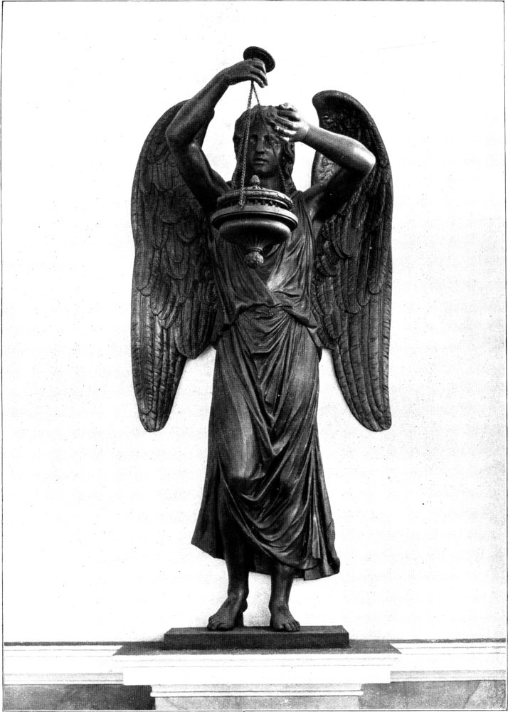 Nicht sicher ist der Lauchhammersche Ursprung, aber doch wahrscheinlich bei dem gußeisernen Grabmal zweier Kinder des Pfarrers Brause auf dem Kirchhofe zu Lichtenberg bei Freiberg. Meine bis ins Jahr 1913 zurückreichenden Nachforschungen über den Künstler, der dieses Grabmal entworfen hat, sind leider vergeblich geblieben, da die alten Geschäftsakten und Briefe im Lauchhammer nicht mehr vorhanden sind. Ich möchte aber doch dem Gefühl Ausdruck geben, daß dieses die Kindesnatur in so rührender Weise verkörpernde Bildwerk der Schule Christian Rauchs entstammt, der seit 1838 wegen des Bronzegusses seiner Statuen für den Posener Dom enge Beziehungen zum Lauchhammer unterhielt und in seinem Tagebuche schreibt, »daß er nie vorher einen solch dünnen und an der Oberfläche so schönen Guß gesehen und daß er sich entschlossen habe, die Figuren (für den Posener Dom) nicht zu ziselieren, sondern nur das Nötigste daran mit dem Punzen und der Feile zu tun und im übrigen nur mit Scheidewasser abzubrennen.« Noch näher läge es vielleicht, an den Lausitzer Ernst Rietschel als Urheber der Lichtenberger Gruppe zu denken, dessen Beziehungen zum Lauchhammer auch bis 1838 zurückreichen.[172] Seit dieser Zeit tritt in der künstlerischen Tätigkeit des Lauchhammers allmählich der Bronzeguß vor dem Eisenguß in den Vordergrund. Aber begründet hat der Lauchhammer seinen künstlerischen Ruhm mit dem Guß in Eisen.