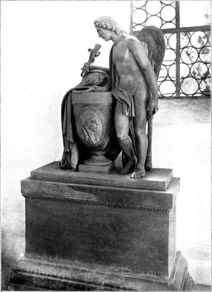 Sehr viele der im Lauchhammer gegossenen Kunstwerke sind in das Ausland verkauft worden oder sonstwie verschollen. Aber noch immer trifft man hie und da in einem Museum oder auf einem Kirchhofe einen aus dem Lauchhammer stammenden älteren eisernen Kunstguß. Ganz besonders reich an solchen Werken ist das mittlere Tal der Zwickauer Mulde, weil Graf von Einsiedel, der Besitzer des Lauchhammers, auf Schloß Wolkenburg seinen Wohnsitz hatte. Das Schloß verrät noch heute in seinem Innern durch die Stuck- und Bilderausstattung des großen Saales den feinen klassizistischen Geschmack des Grafen Detlev Carl. Als er 1794 bis 1804 durch den Hofbauinspektor Giesel in Wolkenburg die schönste klassizistische Kirche bauen ließ, die Sachsen überhaupt aufzuweisen hat, schmückte er ihre griechischen Giebel mit herrlich gelungenen Darstellungen der Kreuzigung und der Auferstehung Christi, und das Innere mit zwei weihevollen Cherubim, die Opferschalen in den Händen halten. (1805 und 1810. Abb. 1 und 2.) Andere Lauchhammerwerke kann man in der ehemaligen alten Dorfkirche zu Wolkenburg bewundern, die jetzt als[167] Gruftkapelle der Schloßherrschaft dient. Dort ist links vom Altar an der Wand die große Grabplatte des Grafen Detlev Carl und rechts das Monument seiner Gemahlin Sidonie Albertine, eine eiserne Urne, die im Relief das Bildnis der Verstorbenen trägt, daneben steht in freier Figur der Tod, dargestellt als Knabe, der die Lebensfackel auslöscht und das Kreuz über die Urne der Heimgegangenen hält. (Abb. 3.) Außerdem enthält die Gruft das sehr bemerkenswerte Denkmal des am 29. Februar 1772 geborenen und am 30. November 1793, am letzten Tage der siegreichen Kämpfe gegen die Franzosen bei Kaiserslautern gefallenen Grafen Friedrich von Einsiedel auf einer liegenden, ovalen Grabplatte. Sie zeigt in lebensgroßem Hochrelief den Grafen in voller Uniform, den Dreimaster mit dem Federbusch auf dem Kopfe, den Degen an der Seite, mit noch jugendlichem, ausdrucksvollem Gesicht. In seiner ergreifenden Schlichtheit ist dieses Werk eins der eindrucksvollsten Denkmäler, die jene Zeit hervorgebracht hat. (Abb. 4.) Im Wolkenburger Park finden wir eine sehr anmutige Statue eines einschenkenden Satyrn (Abb. 5), die auf ein Werk des Praxiteles zurückgeht; das Original, nach dem der Eisenguß geformt ist, findet sich in der staatlichen Skulpturensammlung in Dresden. Ebenda steht auch das Original der Wolkenburger Flora, die in der Hand eine Weintraube und Blumen auf dem Kopfe trägt. Das Original hat sich aber nach Entfernung der unechten Teile (Kopf, linker Unterarm, rechter Unterschenkel) als eine Artemis aus hellenistischer Zeit entpuppt. Endlich schmückt den Wolkenburger Park auch die eiserne Nachbildung einer antiken Knöchelspielerin (Abb. 6), deren aus Rom gekommenes Urbild wir jetzt im staatlichen Museum in Berlin betrachten können. Auch im nahen Waldenburg ist eine reizvolle kleine eiserne Vase vorhanden. Sie steht im Grünfelder Park unweit des altertümlichen Steintores in einer Gebüschgruppe rechts vom Wege. Endlich enthält die Fürstlich Schönburgische Gruft im Schlosse Lichtenstein vier eiserne Sarkophage Lauchhammerscher Arbeit. (1807 und 1861.)