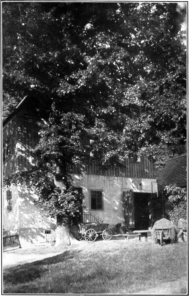 An manchen anderen Stellen des schönen unvergeßlichen Nordböhmens ist mir der Baum gerade zum freundlichen Verräter, zum willkommenen Anzeiger eines Dorfes geworden. Der Weg führte, durch allerlei Bäume und reichen Pflanzenwuchs unübersichtlich geworden, dahin, der Karte nach mußte die Ortschaft nahe sein; und siehe da, aus dem zusammengeballten Haufen von Obstbäumen grüßte der Baum entgegen, noch ein paar hundert Schritte, und aus dem Grün tauchten die bescheidenen Gehöfte auf.