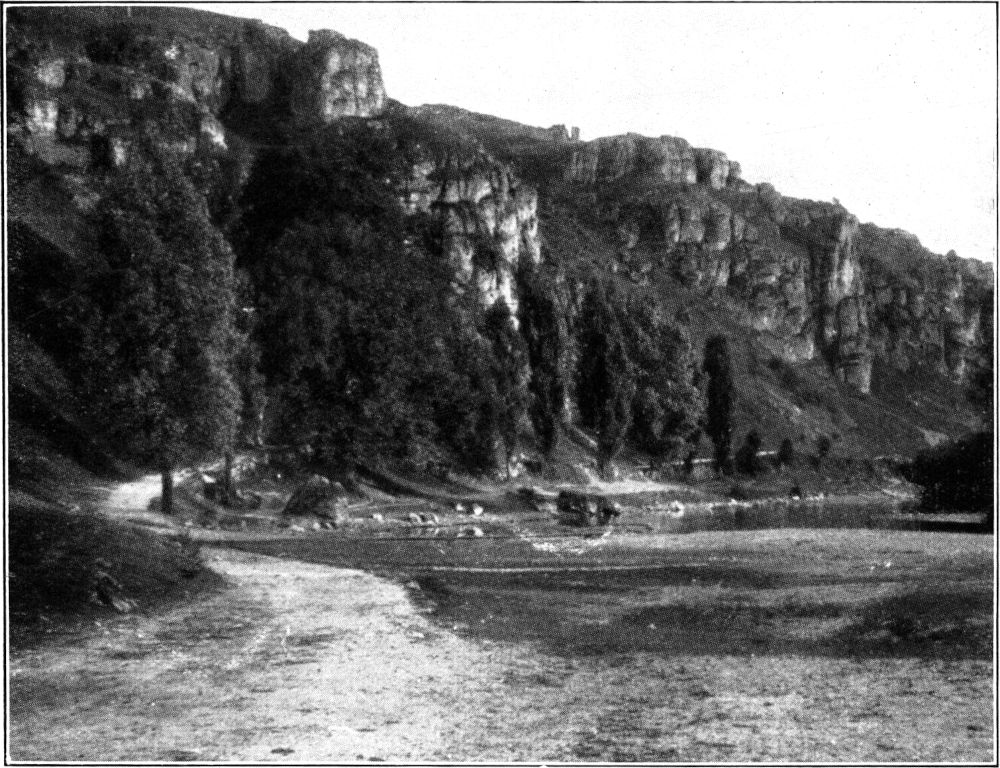 Abbildungen 5 und 6: An der Naab bei Kallmünz. Wenn die Bilder mit den Farben reden könnten, die das Licht der Landschaft zu geben vermag! Was waren das damals für herrliche Bäume! Sie hätten mich fortführen[190] können in ein fremdes Land. Aber weg mit solchen Gedanken, die immer nur vergleichen wollen, die untreu machen wollen. Seien wir fröhlich, daß es doch eine deutsche Landschaft ist! Eine steile, von zerbröckelnden Felsklippen aufgebaute Talwand, graugrün das seltsame Gestein, grau verbrannt die kümmerliche Pflanzendecke, voll gelbem Staub der Weg, der, kaum gehoben, sich wieder senkt, das schwarze und doch so weiß glänzende Wasser der Naab – in der staubgeschwängerten Glut des Sonnenscheins flimmern und blinkern die kleinen Widerscheine auf den dunkelgrünen, fast ledrigen Blättern der Bäume: und dieser ganze große Reichtum hineingedrängt und aufgehäuft in einen halbwegs großen, scharf sich drehenden Bogen des rasch eilenden Flusses.