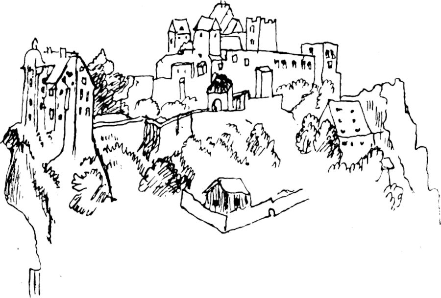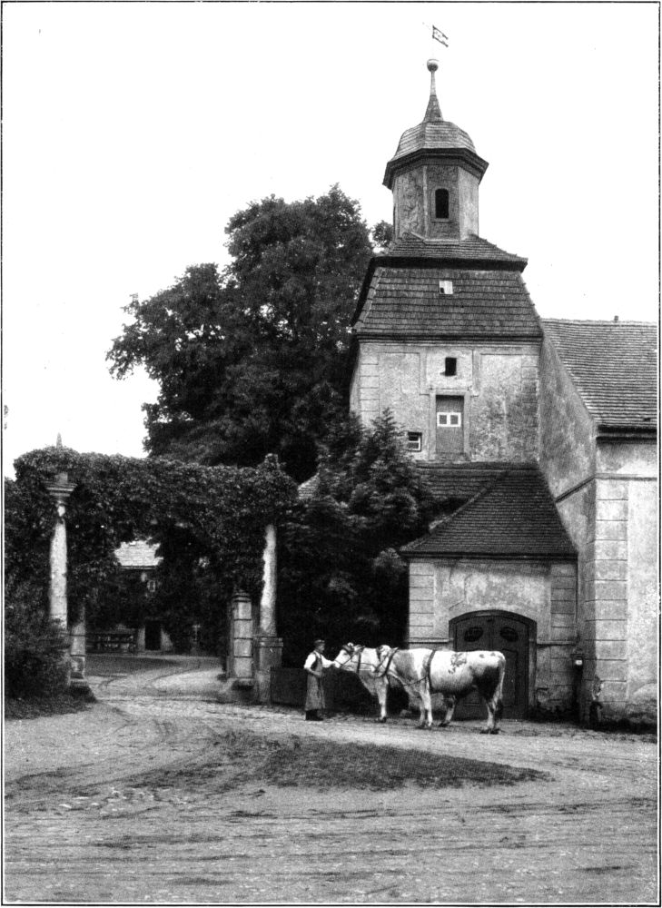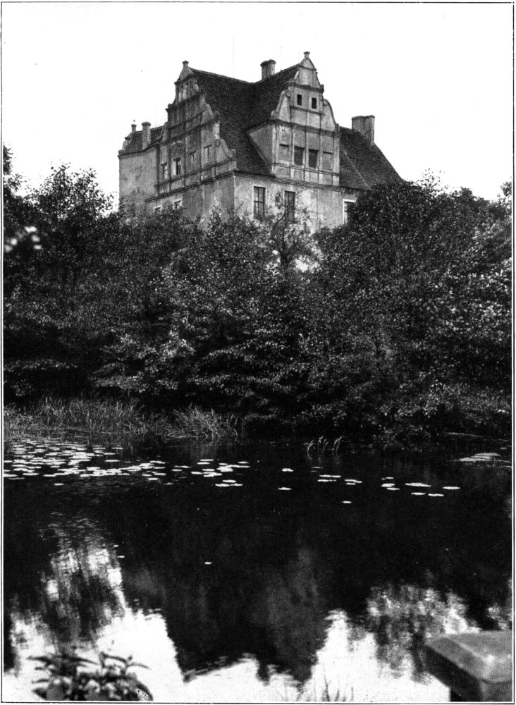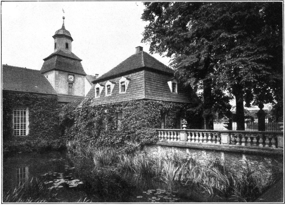 Sturmsicher und fest liegt das alte Wasserschloß hinter Fluß und grünlinsigen Weihern; der schmale Pfad, der jetzt durch diese an den Bau heranführt, war früher sicher noch nicht vorhanden. Mit tiefer Kehle singt der Frosch hier von Lenz und von Liebe.