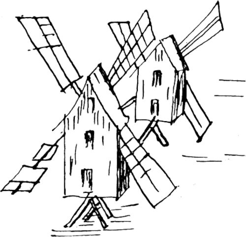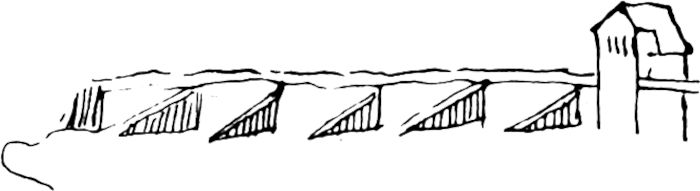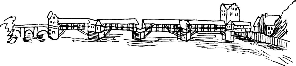 Zwei Altgewordene, die ihre Dienste schlicht und recht, wer weiß wie lange, getan haben. Sie werden nicht mehr gebraucht, eine steinerne Brücke mit weitbogigen Öffnungen und gerader Fluchtlinie hat die beiden für immer abgelöst, abseits stehend sehen sie der neuen Zeit mit ihrem Verkehr zu.