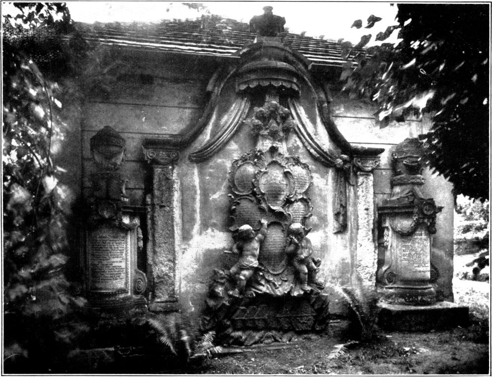 Auf den Torpfeilern ruhen oft Steinkugeln, sie mahnen an noch ältere Zeit, wo man die Schädel erschlagener Feinde, dem Thor und Wode geopferter Gefangener, hier aufstellte. Wohl meist unbewußt hält hier der Baumeister[174] einen Rest aus heidnischer Vorzeit fest. Ja, alte Häuser und alte Bäume erzählen oft mehr als manches Geschichtsbuch. Und wenn jener Bergahorn mit seiner Steinbank wird doppelt so stark und breit sein wie jetzt, da haben unter ihm auch Generationen von Kindern ihre unschuldigen Spiele getrieben, da sind auf der Bank noch mehr Schwüre der ewigen Liebe getan und dann gebrochen worden wie jetzt. »Aufrecht geschritten, was frag’ ich noch viel, Leben und Liebe sind Würfelspiel«, so singt ein moderner Dichter, und das Würfelspiel des Lebens macht auch vor den stolzen Herrenhäusern nicht halt! »Bischofspresse« nennt der Volksmund ein Grundstück (Abb. 3), wenn auch hier[175] zu unrecht die Größen des einstigen Bistums Meißen mit einem Weinbergsgute in Zusammenhang gebracht werden. In seinem Garten aber träumt ein kleiner Rundtempel von ferner wehmütiger Zeit. Sechs Säulen tragen auf kräftigem Balkenwerk eine Flachkuppel in Sandstein, die hatte einst eine Inschrift: »Uns ward der Tod, den Frevler scheun, Geburt zum ewigen und edlern Leben.« Vor Jahren stand im Tempel eine Urne von Stein auf einem Sockel, der trug die Inschriften: »Wenn hier von uns, die Gott vereint, der letzte auch hat ausgeweint, dann wird ein freudig Wiedersehn auf ewig unser Glück erhöhn.« Und die andere Seite: »Der sehnsuchtsvolle Wunsch der Wiedervereinigung, wo keine Trennung mehr ist, wurde erfüllt den 17. Januar 1820.«