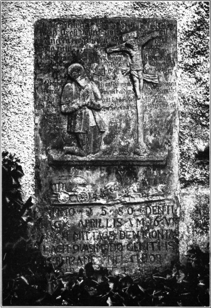 Still und feierlich liegt das Innere des kleinen Gotteshauses da. Zwei herrliche Sträuße duften vom Altar her, der edel und würdig bekleidet ist mit[234] rotem Sammetornat vom Jahre 1690. Rechts von dem kleinen Spätrenaissancewerk fesselt meine Aufmerksamkeit ein ungewöhnlich schönes Steinmal. Ein geharnischter Mann kniet dort, ein Ritter aus dem Zeitalter der Reformation. Aber in seinem Gesicht spricht sich mehr noch aus als ritterbürtiger Anstand – der charaktervolle langlockige Kopf redet auch von offenbarer geistiger Überlegenheit und Bedeutung. Christoph von Beschwitz ist es, Erbherr und Doktor der Rechte, der seit dem Jahre des Herrn 1540 hier seine Urstünd erwartet. Mit einiger Mühe entziffre ich die Schrift am Fuße des Steins. »... sein Wandel war erbar fridtsam und schlecht – in seiner Herren Dinst ein trewer Mann ...« O du deutsches Wort!