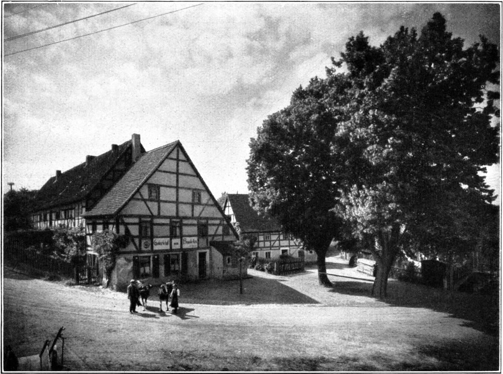 Hinter Freitelsdorf gilt es zum ersten Male heut, die Landstraße unter die Füße zu nehmen. Schwarzblau dehnt sie sich nordwärts in unendliche Weiten. Aber langweilig wird sie mir nicht, auch sie hat ihren Reiz, ihren großen sogar – das Geheimnisvolle, der Zug in die Ferne liegt auf ihr! Manch Dörflein, manch stattlicher Kirchturm grüßt mich von weitem, am[238] prächtigsten doch der gewaltige Breitturm von Niederebersbach mit dem kecken Dachreiterchen ganz obenauf.