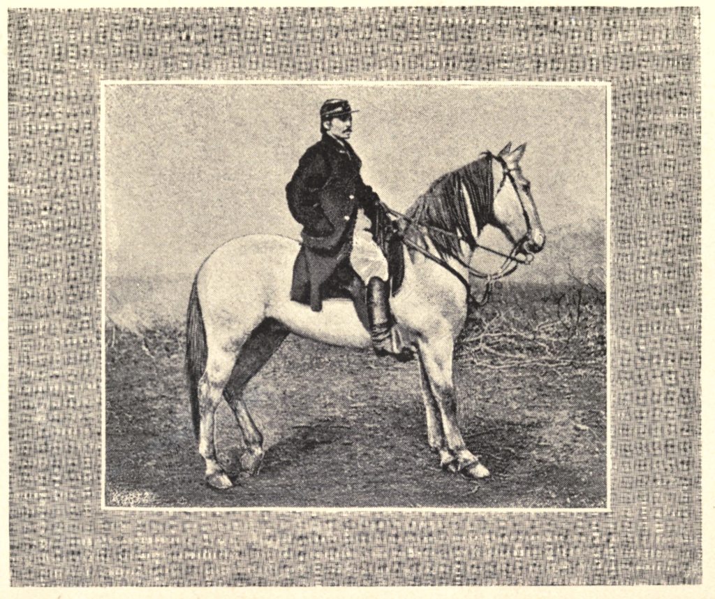 I next joined the army on January 1, 1864. It was still at Brandy Station, but instead of Yancey’s house I found awaiting my arrival the most picturesque home I have ever lived in; it will ever be remembered as one of the brightest surprises of my life. Imagine two ordinary army tents, set close together, one of them for a parlor and dining-room,[Pg 30] the other for a bedroom; both having chimneys of mud and stone, presenting fine open fireplaces with real mantel-pieces on the inside; the bedstead was of plain pine timber, and the bedding delicious, sweet, clean straw sewed up in sacks, the whole covered with a layer of several brown woollen army blankets; there were, of course, no pillows or pillow-cases, a couple of saddles answered for the one, and I presume imagination had to do service for the other; yet we were supremely happy. I was a soldier, and these were war times, and I prided myself that I could dispense with luxuries and yet be comfortable. [There is no woman who can, better than I, enjoy beautiful surroundings, and who absolutely craves all the exquisite luxe that is obtainable, or can sleep more deliciously under the light, warm, silken eider-down, but it[Pg 31] is a great satisfaction that these war experiences have fitted me to climb a mountain, sleep upon a bare floor, or ride twenty miles in a rain storm, and overcome situations which, without them, I never would have surmounted.] But it was bitterly cold sometimes that winter in these canvas houses, and I did not dare leave my bed in the mornings until our man, who was maid-of-all-work, built a great big log fire and literally drove us out of bed with the heat. And, oh! what a grandiose parlor did I step into for breakfast the first morning I was there, with its works of art cut from the illustrated newspapers of the day, framed with strips of red flannel, while on my mantel were spread varieties of bonbons imported expressly from Washington to celebrate my arrival. Our table service was of pure tin, washed and[Pg 32] burnished with sand and water after every meal, and because our spoons were of the same material our soup was not a jot the less savory; as we seldom indulged in French peas our two-pronged forks answered every purpose, and as I occasionally managed to borrow a table-cloth and sometimes a napkin from our neighbor Yancey, our little tête-à-tête dinners were quite recherché, considering the surroundings. But my habitation was a gem, worthy a place in any collection of “Happy Homes.” When, however, my baby daughter and her nurse joined me I gave up my “open-air” life and returned to the Yancey mansion, where I remained until General Grant, fresh from his marvellous victories in the West, came among us and made preparations for his advance to Richmond.