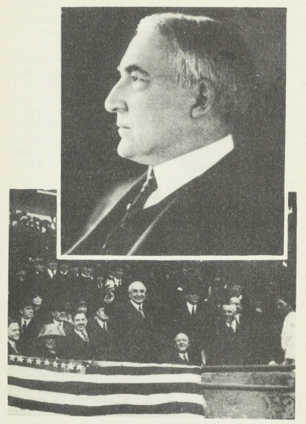 Nineteen-ten was an epochal year in my life. Ohio was electing a Governor, and the Republican candidate of that famous gubernatorial election was no other than the brother of my adored English teacher! I have often tried to remember how this knowledge was first conveyed to me; whether I had actually known that there was a Warren Gamaliel Harding from hearing conversations about him at home, whether I had been first introduced to his existence through talks with Miss Harding on one of the many “walks home” we used to have; whether I had heard of him through one whom I will call Mrs. Sinclair, whose husband, a judge and a prominent Democrat in Ohio, played cards with Mr. Harding very often; or whether I beheld his picture, ubiquitously displayed in almost every store window on Main and Center Streets, as I walked to and from high school. My early recollections are not so much concerned with actually seeing him as with the unforgettable sensations I experienced after I had once seen him and knew that he was for me my “ideal American.”