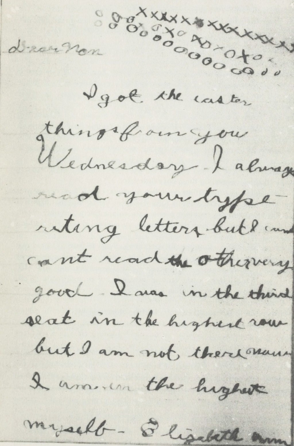 On April 30th, after having despatched the letter to Tim Slade, I received, upon my return home that evening, a small package from Miss Harding. It contained a bracelet I had left on her dressing-table in Marion, and wrapped around the bracelet were two $20 bills. Having had so much difficulty over the $40 which I did not owe, and the $40 money order which Miss Harding had sent me for railroad fare to Marion and which I had failed to endorse, with the subsequent distress of not being able to cover my $15 check to Tim, I sighed with humorous appreciation when I perceived another $40! But I was indeed grateful for any amount she saw fit to send. Immediately, under the same date, I sent her a letter of thanks. In this letter I quoted liberally from one received from my sister Elizabeth. My sister had written of their own financial difficulties, and how she and her husband planned to be in Chicago that summer, both working. They were not planning upon taking Elizabeth Ann unless I wrote that I myself could not keep her.