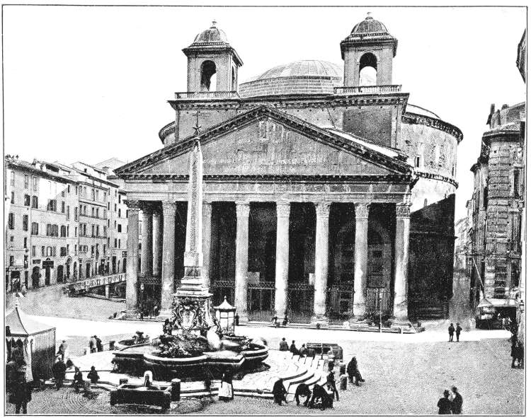 [10] The pictures at Ara Cœli and Sta. Maria Maggiore both claim to be that carried by St. Gregory in this procession. The song of the angels is annually commemorated on St. Mark’s Day, when the clergy pass by in procession to St. Peter’s, and the Franciscans of Ara Cœli and the canons of Sta. Maria Maggiore, halting here, chaunt the antiphon, Regina cœli, lætare.