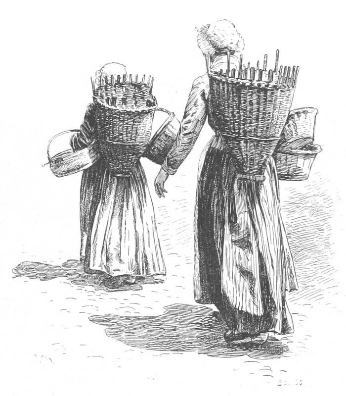 En effet, quelques sous, à peine, rémunèrent les meilleures dentellières, les milliers de dentellières que, par assemblées, aux jours d’été, l’on rencontre faisant marcher leurs langues et leurs métiers, à l’abri d’un mur, dans les recoins d’ombre des ruelles des villes et des villages. Cent mille dentellières, au Puy et dans le Velay, travaillant le lin, la soie, la laine, le poil de chèvre et celui du lapin angora, et le fil d’argent et le fil d’or...