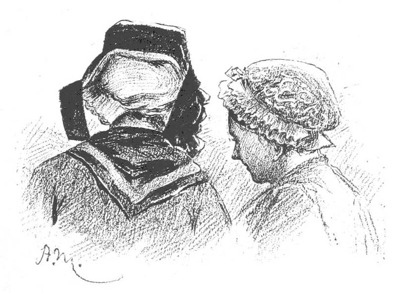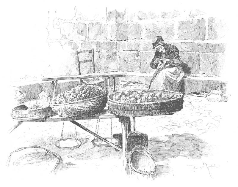 Je me suis engagé, au hasard, par un dédale inextricable de ruelles en échelles, de montueuses spirales, encaissées entre de longs et hauts murs, aux tournants desquelles, dans un silence, une torpeur de ville espagnole, son délabrement et sa puanteur aussi, dans le rectangle d’ombre et de fraîcheur d’une impasse, éclatent les caquets d’un cercle de dentelières, pittoresques par quelques détails de vêtements, débraillées à la chaleur, manœuvrant, de doigts habiles, le jeu des écheveaux sur les jolis tambours...