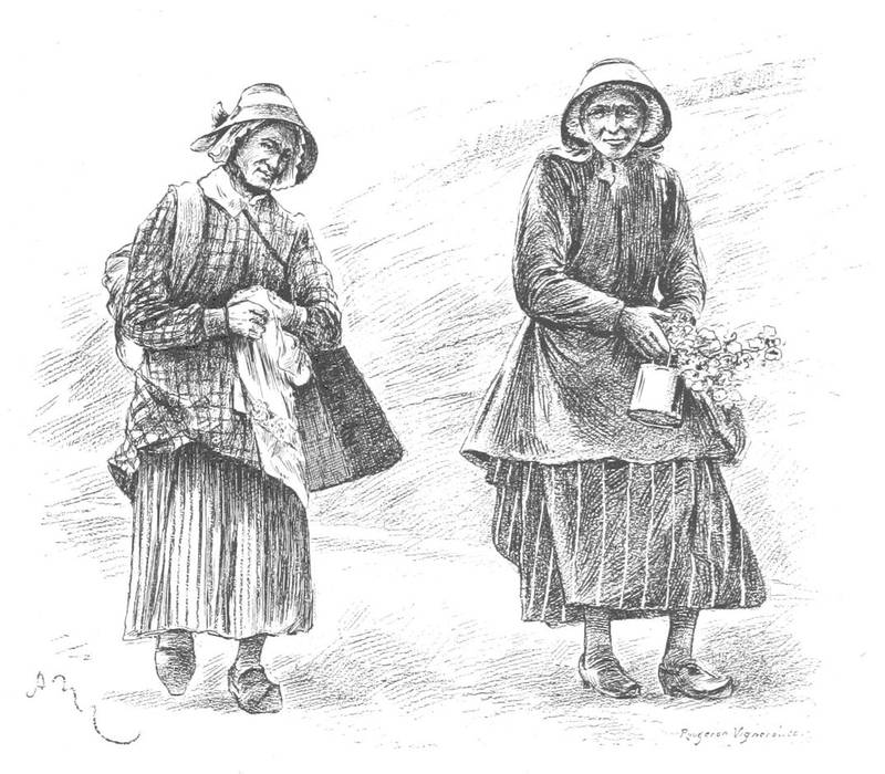 Mais quand même, le Velay, dans ses replis profonds, est l’une des provinces françaises qui ont gardé le plus d’autrefois, qui sont restées les plus étrangères en France, assez pour forcer les comparaisons avec l’Italie, l’Espagne, la Corse... «Les femmes, juge George Sand, ont toutes l’air hardi et cordial. Je les crois bonnes et violentes. Elles ne manquent pas tant de beauté que de charme. Leurs têtes coiffées d’un petit chapeau de feutre noir orné de jais et de plumes ont, dans la jeunesse, un certain éclat, et, dans la vieillesse, une austérité assez digne; mais tout cela est trop mâle, les épaules larges et carrées sont en désaccord avec le corps grêle, et leur manque absolu de propreté rend leur toilette désagréable à regarder. Dans la montagne, c’est une exhibition de guenilles incolores sur de longues jambes nues et fangeuses, sans préjudice des bijoux d’or, et même de diamants au cou et aux oreilles, contraste de luxe et de misère qui m’a rappelé les mendiants du Tivoli. Pourtant, les femmes d’ici sont laborieuses. L’art de la dentelle est enseigné par la mère à sa fille. Aussitôt que l’enfant commence à babiller, on lui met une grosse pelote de corne sur les genoux et les paquets 354 de bobines entre les doigts. A l’âge de quinze ou seize ans, elle sait faire les plus merveilleux ouvrages, ou elle est réputée idiote et indigne du pain qu’elle mange; mais dans l’exercice de cet art délicat et charmant, si bien approprié à l’adresse patiente de la femme, une autre tyrannie que celle du clergé pèse sur la Velaisienne: c’est celle du commerçant qui l’exploite. Comme toutes les paysannes du Velay et d’une grande partie de l’Auvergne savent faire ces ouvrages, elles subissent toutes également la loi du bon marché, et l’on est effrayé de l’exiguïté sordide du salaire...»