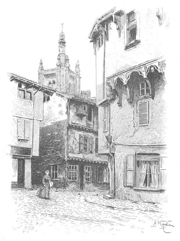 Montferrand! qui avait pu être qualifiée ville de grands trésors et de pillage, riche de soi, et bien marchande où il y avoit de riches vilains à grand foison, n’est plus qu’un médiocre faubourg; splendeur en poussière, dont le passé ne s’atteste qu’à des reliefs de sculpture aux maisons, à l’église, à de maigres vestiges de pierre ou de bois du XVe siècle, la maison de l’Apothicaire, la maison de l’Éléphant; les riches vilains ne sont guère plus que les patrons de guinguettes où la garnison de Clermont s’attable les dimanches.