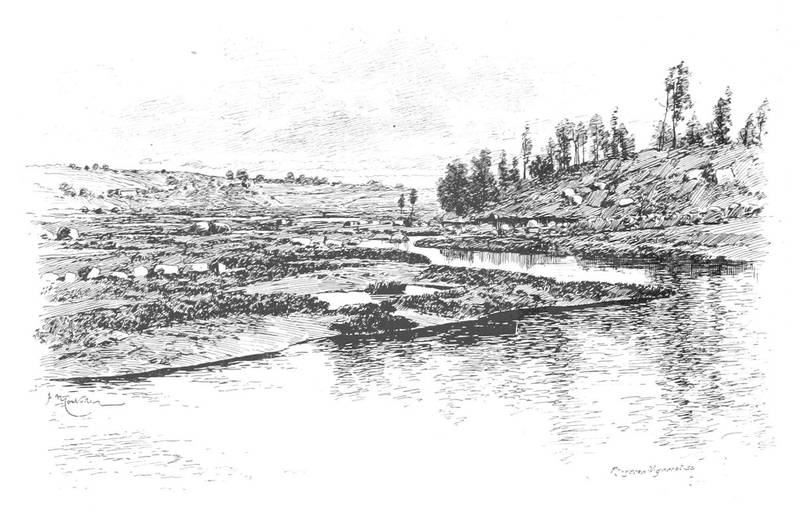 19 Voici qu’à certaine distance de la montagne, des cavaliers du train des équipages barrent le passage, à cause des exercices de tir au canon de l’artillerie, campée l’été à la Fontaine du Berger.