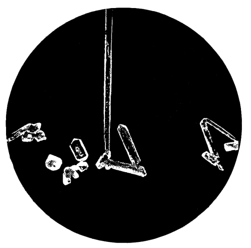 4. Blyth‘s Test.—If methyl iodide be added to a solution of brucine in strong alcohol, circular rosettes of crystals form in a few minutes. Strychnine does not give this reaction.