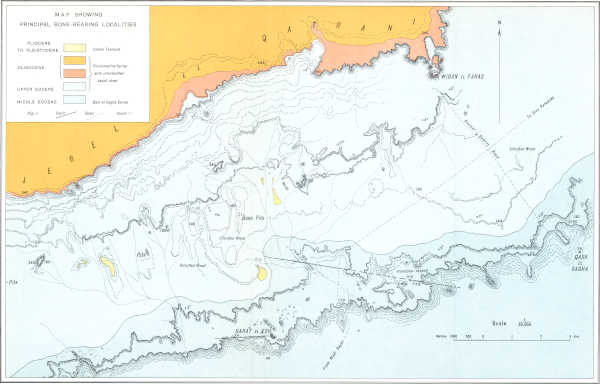 | XVIII. — | Map of the area north-west of Qasr el Sagha, showing principal bone-bearing localities, 150000 | „ | |