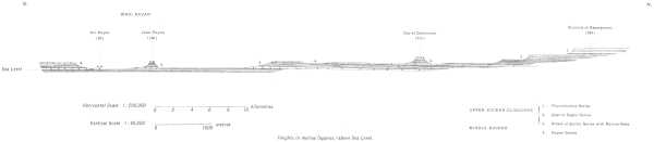 | Width and highest points. Strata forming ridge. Gravel terraces. Low points of ridge. Original access of Nile waters to depression. Formation of lake and deposition of sediment in Fayûm | 25 |