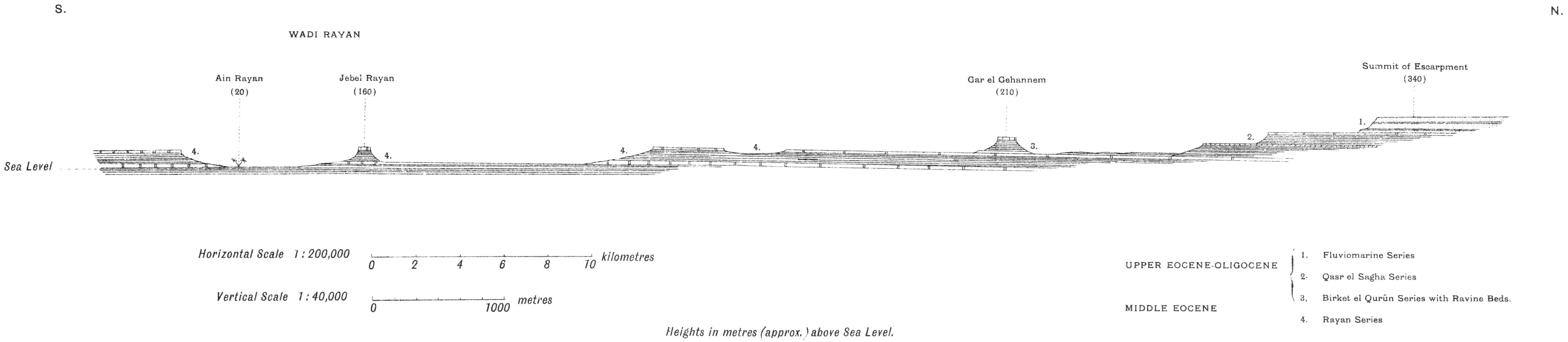 SECTION FROM SIDMANT EL JEBEL IN THE NILE VALLEY THROUGH MEDINET EL FAYÛM TO THE SUMMIT OF JEBEL EL QATRANI, NEAR WIDAN EL FARAS.