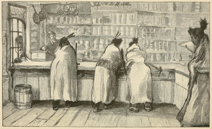 The company established forts, and garrisoned them with Highlanders and Norwegians. The climate was too cold and the food too coarse to attract Englishmen to the service. The forts, or posts, were about a hundred and fifty or two hundred[14] miles apart, and to them the Indians resorted in the spring of the year with the furs obtained by hunting, snaring, and other modes of capture. In return for these they obtained guns, powder and shot, traps, kettles, axes, cloth, and blankets. The standard of value for everything was a beaver skin. Two white foxes were worth one beaver skin, two silver foxes were worth eight beaver skins, one pocket-handkerchief was worth one beaver skin, one yard of blue cloth was worth one-and-a-half beaver skins, a frying-pan was worth two beaver skins. As time went on, and the value of furs in the market rose or fell, the prices of certain things altered. But this is a sample of what they were when the hero of our tale first went out to Hudson’s Bay in 1851.