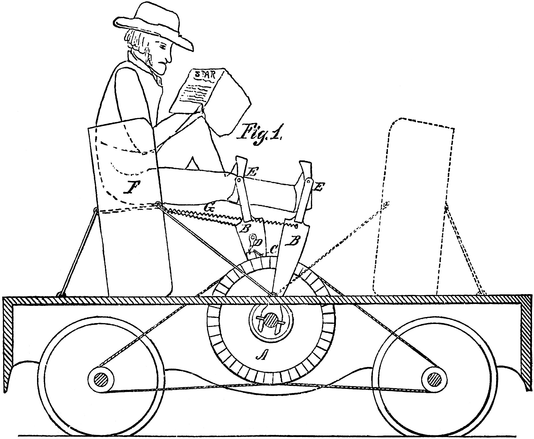 “I may operate my unicycle by either clock-work or steam, instead of foot-power.
