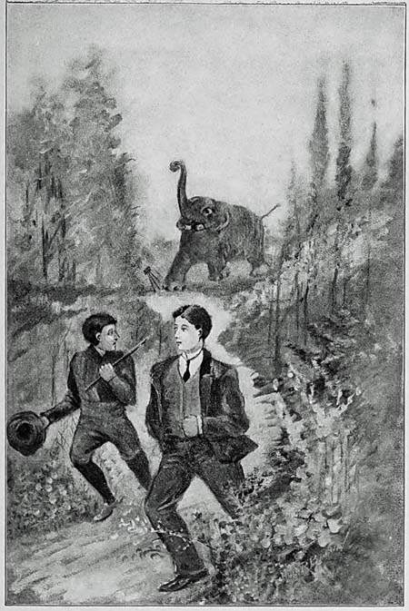 The path led to a spot fully a hundred feet back of the track. They pursued it in silence until Bob caught Frank by the sleeve as a signal to stop.