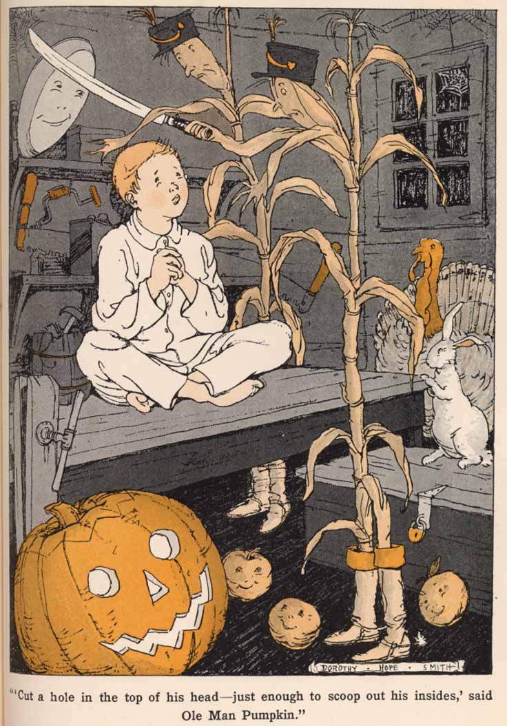 "'CUT A HOLE IN THE TOP OF HIS HEAD--JUST ENOUGH TO SCOOP OUT HIS INSIDES,' SAID OLE MAN PUMPKIN"