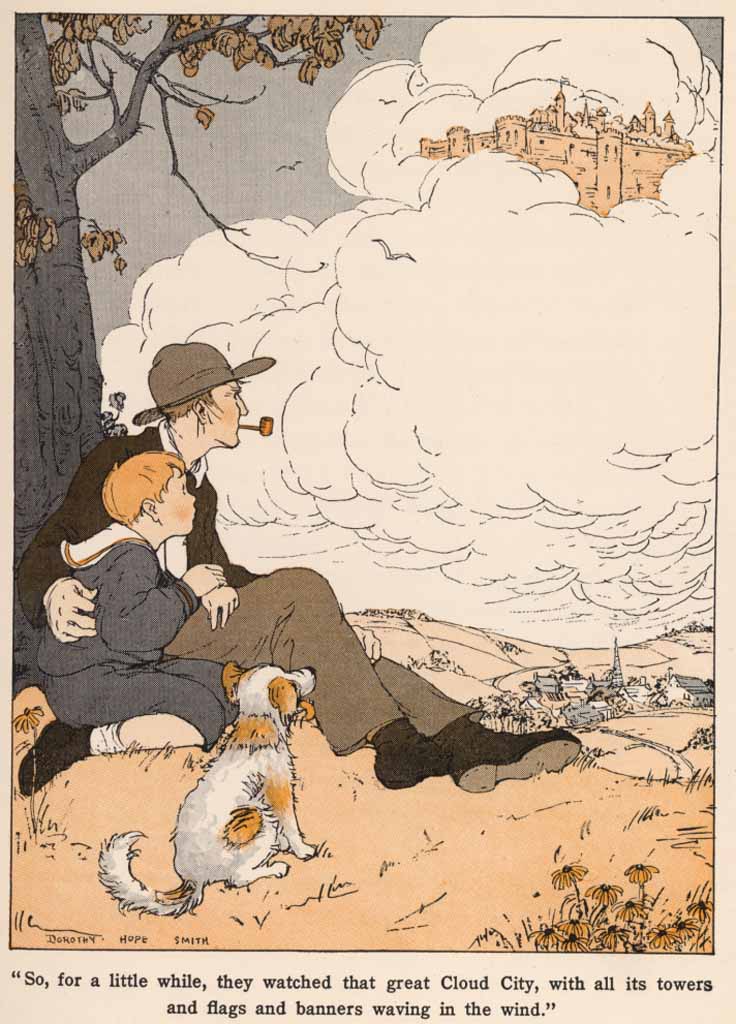 He looked over towards the West, where the Sun marched into his barn every night. Fatty Hamm declared that the Sun kept a garage behind that hill, but Marmaduke insisted it was a barn, for he liked horses best, and the Sun must drive horses. There was a real hill there, not little like the one where he sat on the fence, but a big one, 'most as big as a mountain, Marmaduke thought. Sometimes it was green, and sometimes grey or blue, and once or twice he had seen it almost as purple as a pansy.