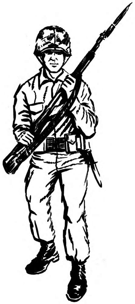 b. Development of Bayonet Fighting Techniques.—The bayonet was developed to protect[Pg 5] the musketeer while he reloaded his weapon, a defensive mission. The tactics employed were an individual or unit matter; there was no published doctrine for bayonet fighting. However, as weapons improved and rapid fire, longer range weapons were developed, the troops were more widely dispersed on the battlefield. The percentage of time spent in close combat with the enemy was reduced. As a result, the use of the bayonet, a close combat weapon, was also reduced. There is little said about the use of the bayonet in the American Civil War and Spanish-American War.