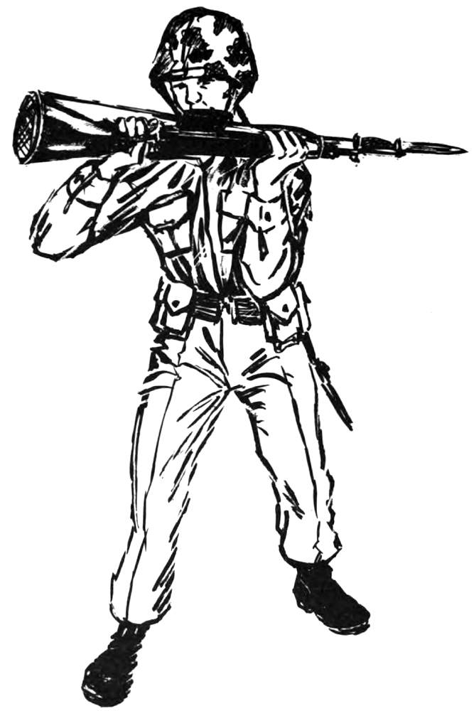 (2) The individual attack movements described in early manuals closely resemble those taught and employed today. Today’s system is somewhat simpler and facilitates better balance of the bayonet fighter and control of the weapon. Training consisted of individual familiarization with the movements, the use of dummies, thrusting rings, and practice in assaulting enemy trenches with troops on line. The latter category received more emphasis. Dummies were placed in trenches and attacked by bayonet fighters. The system of bayonet fighting taught to American fighting men during World War II closely resembled that employed during World War I. The basics of this system were established in 1905 and changed very little through the conduct of World Wars I and II. Bayonets were employed during World War I principally in the assault of enemy trenches, while, in World War II, their[Pg 8] employment was extended to include seizure of key enemy held terrain objectives.