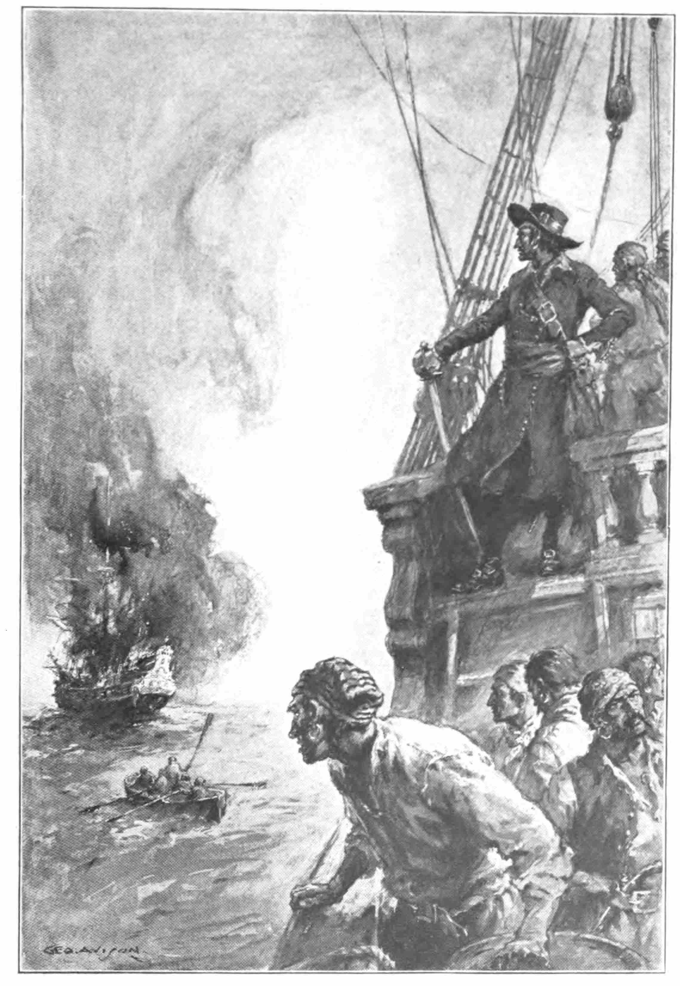The ship seemed awfully quiet after the roaring Williams had gone. Something was missing, but what it was they did not just know. Unsuspectingly, the grim jest of sending Williams home to the gallows had removed the heart of the piratical enterprise. If the Revenge expected to keep on the grand account, fellows like Williams, who could do the rough work, were essential, and without him the great affair threatened to simmer back to the status of a mere mutiny.