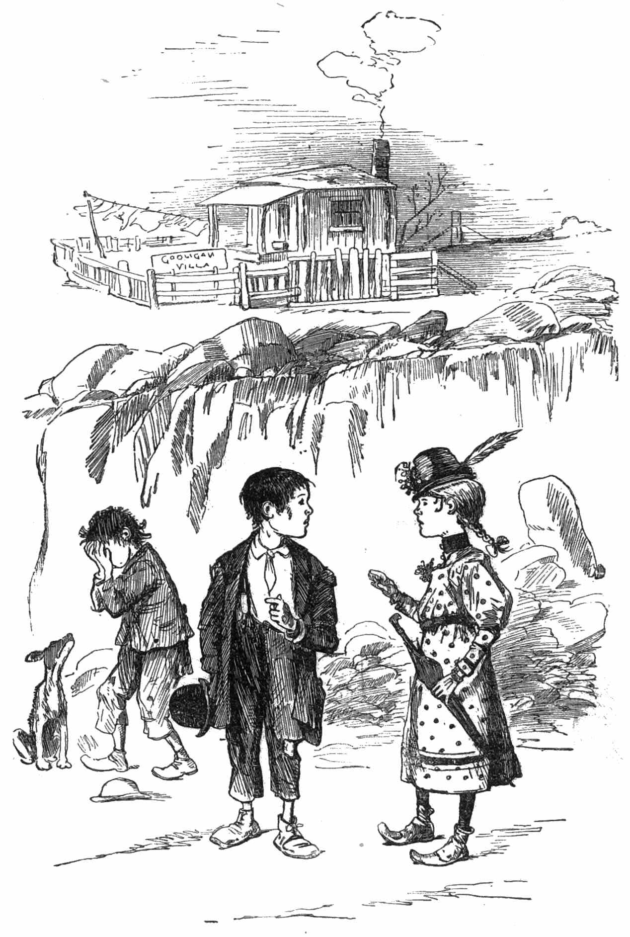 “No, Tom, no. Yer don’t know her, an’ yer don’ want ter. She’s de ice-cream fiend of de ward; she’s beggared two newsboys an’ a Italian bootblack, an’ she’s a looking roun’ for another wictim.”