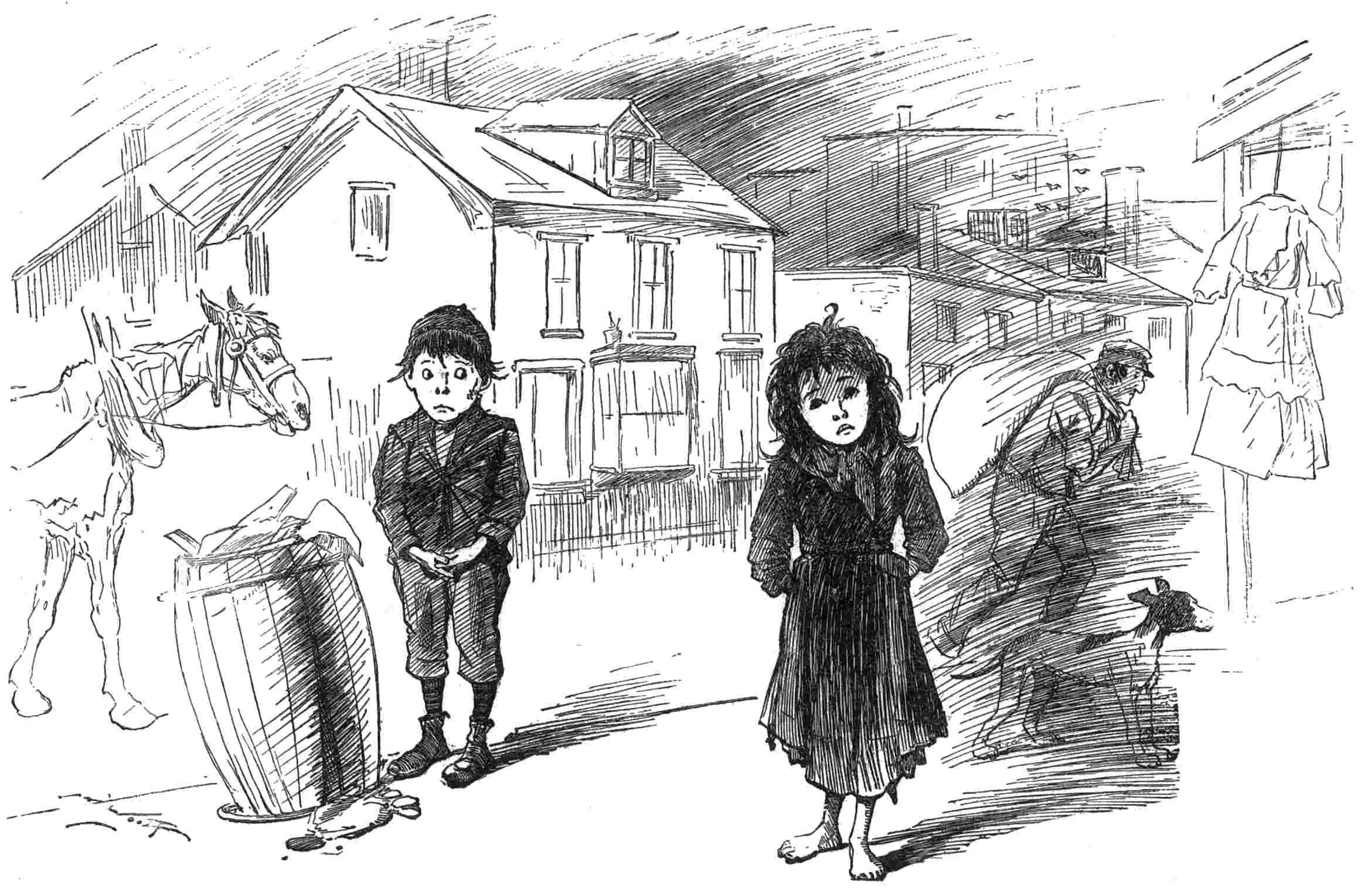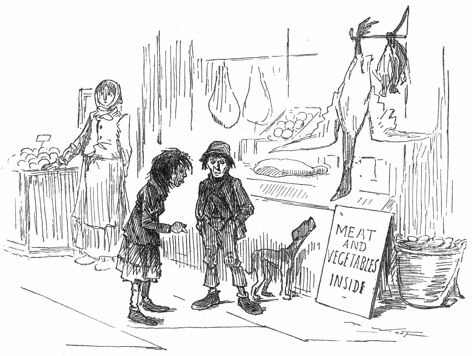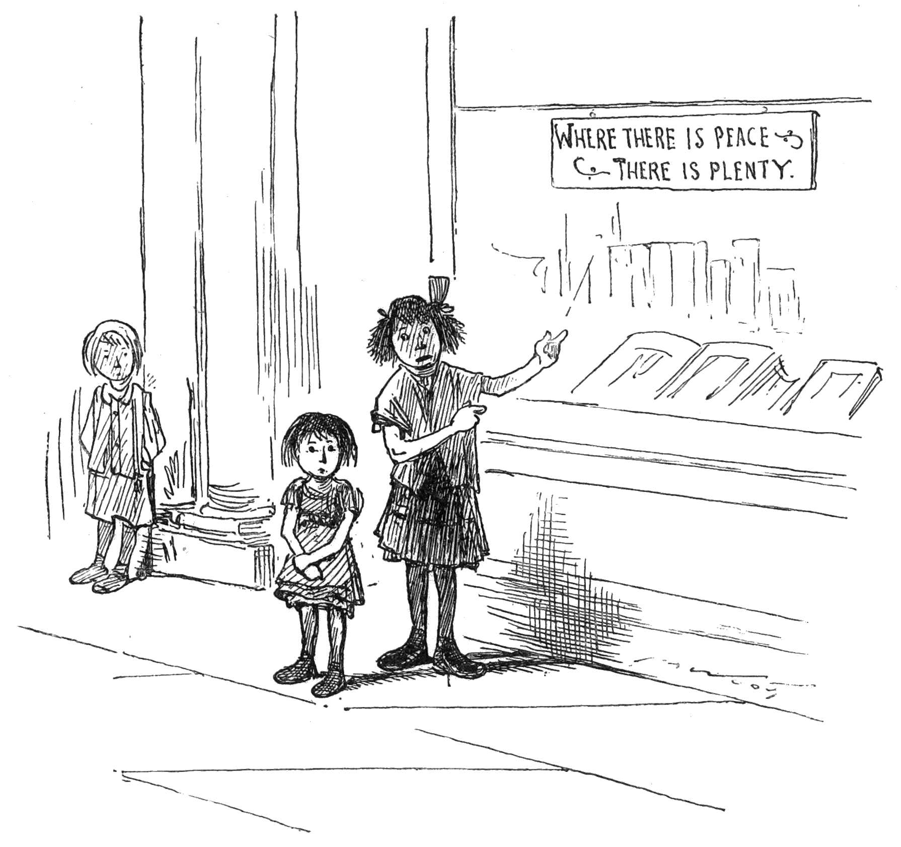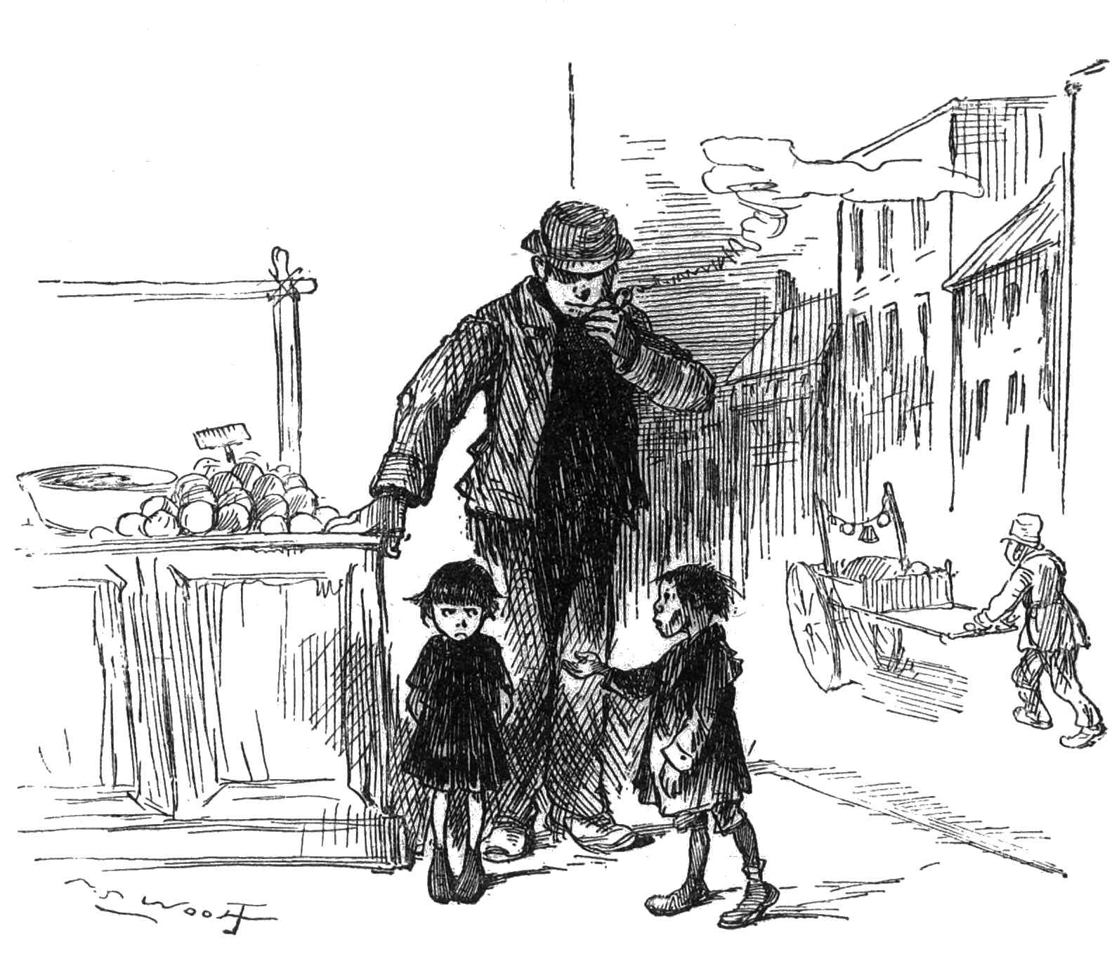Girl: “Please, ’m, give me an’ me brudders an’ sisters suthin’?”