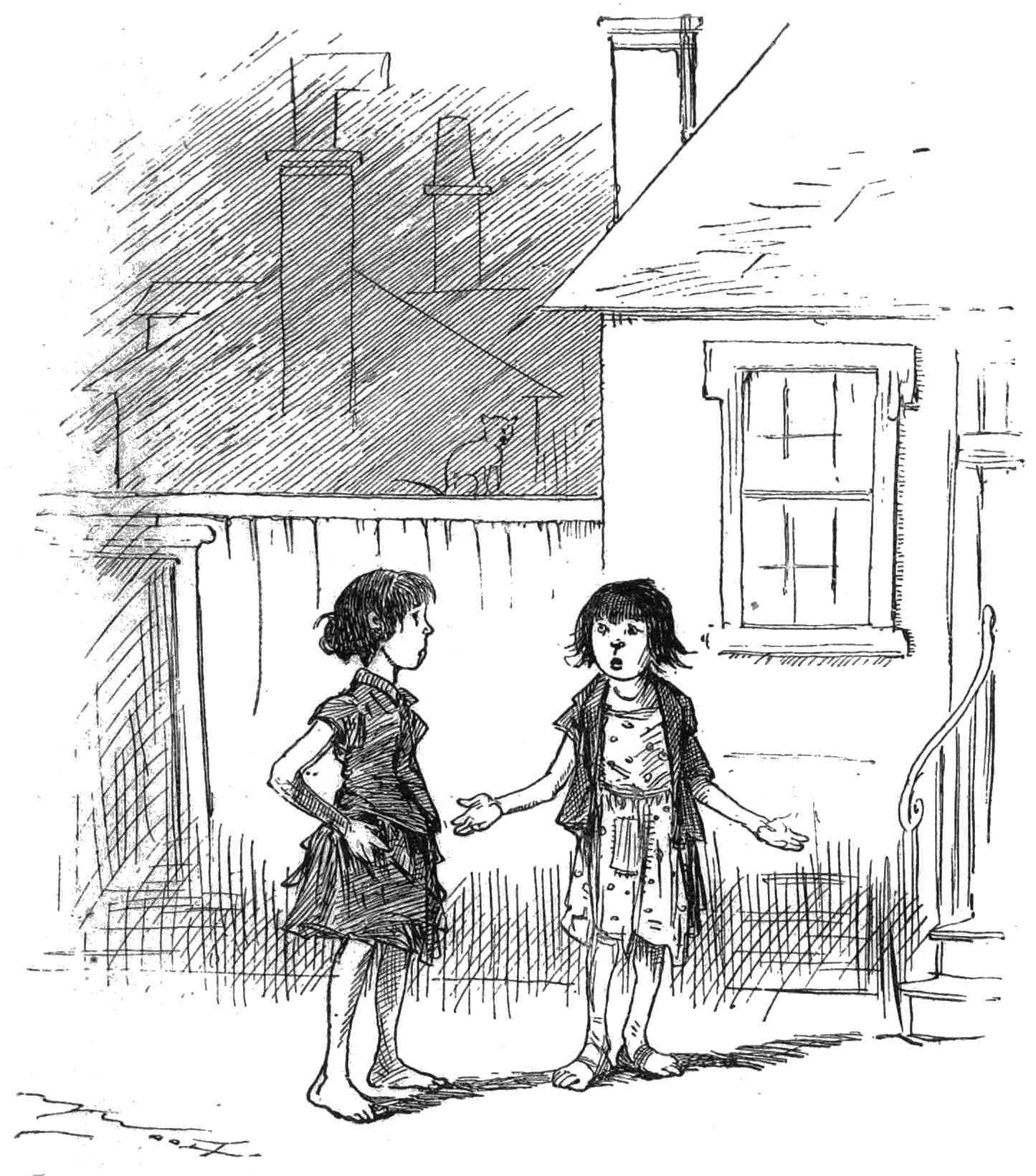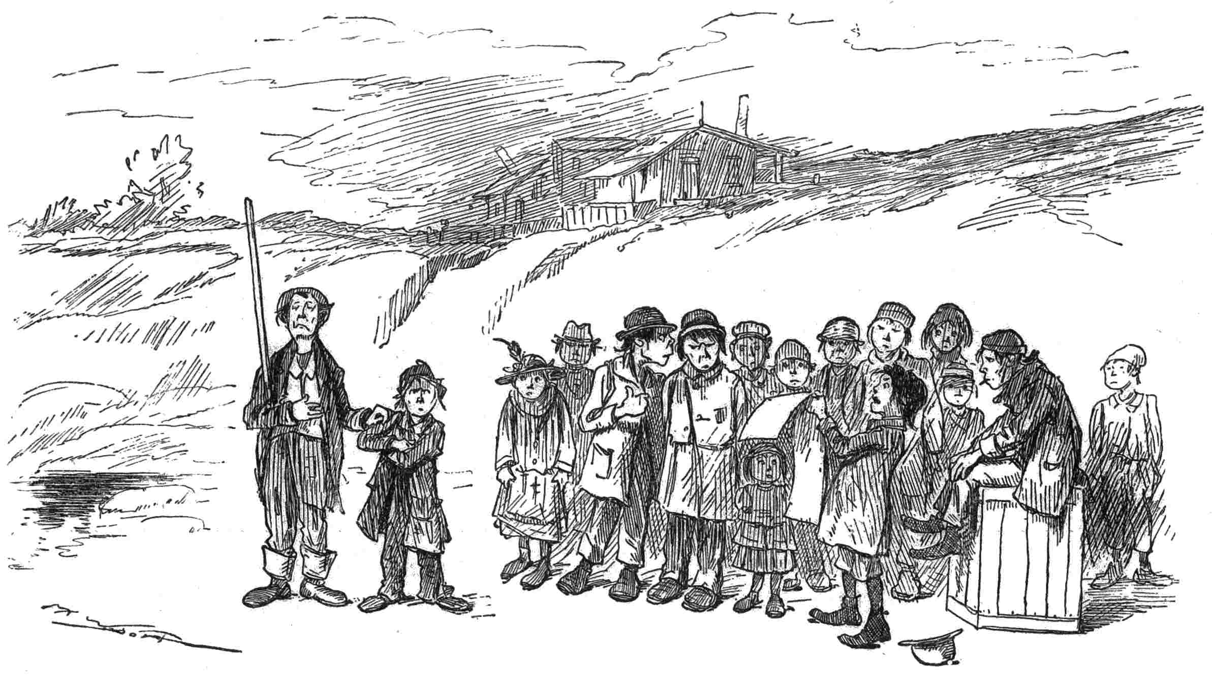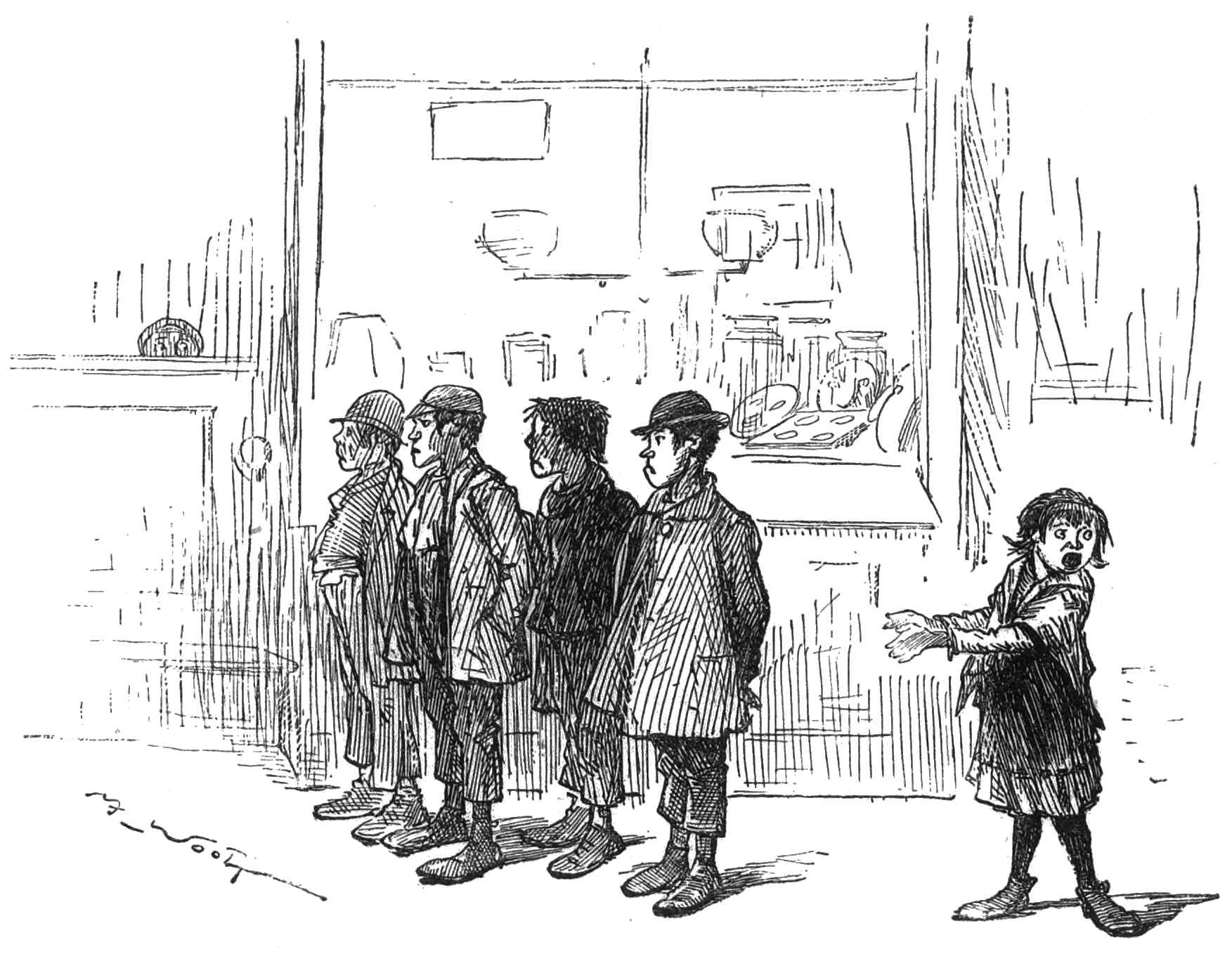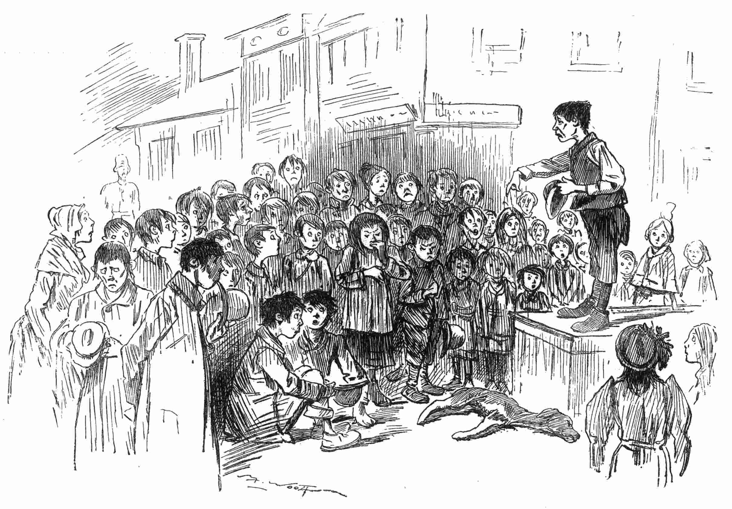 Girl: “Please, ’m, give me an’ me brudders an’ sisters suthin’?”