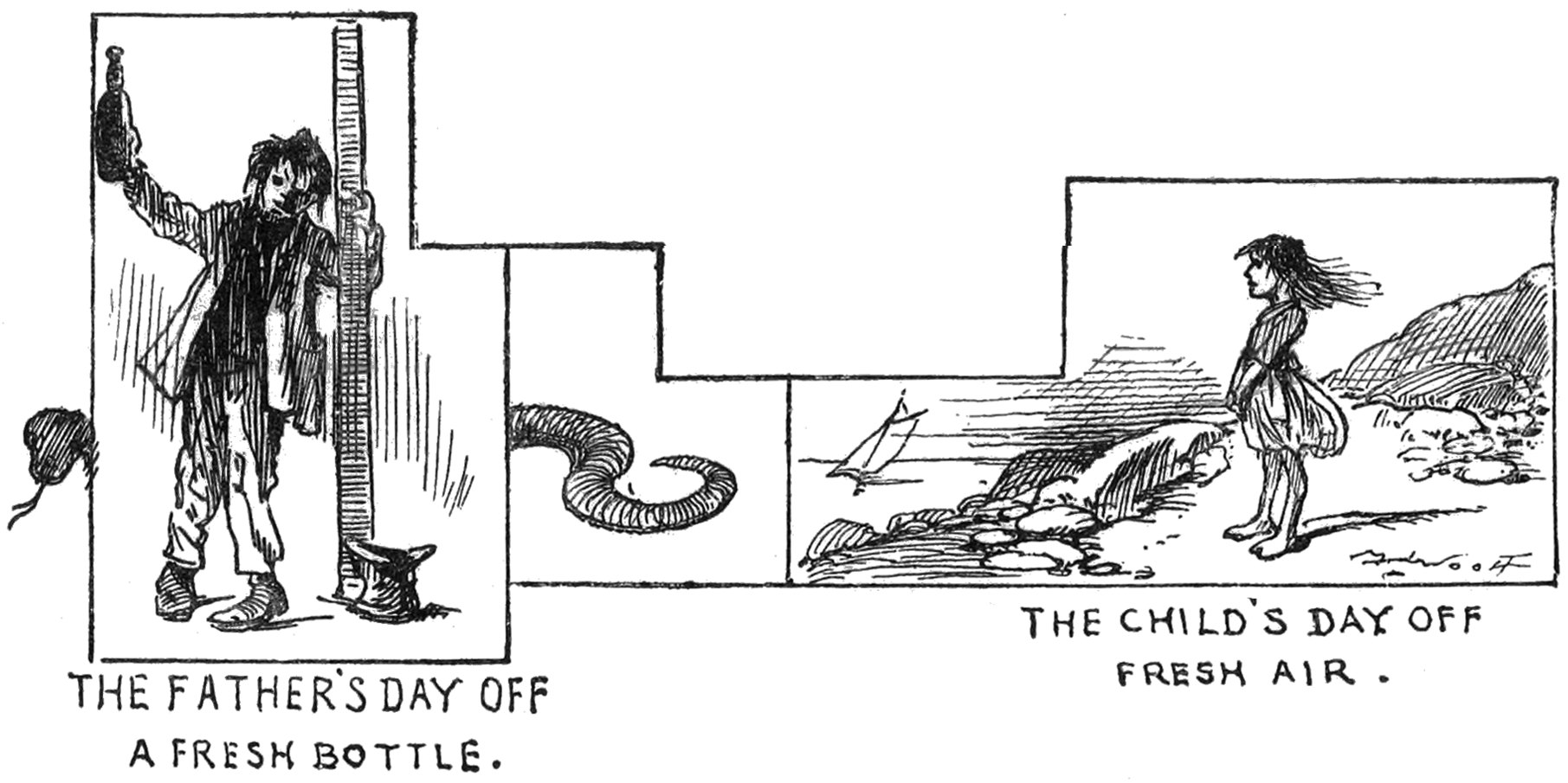 Nurse (in continuation, speaking of her brother in the wagon).—“Yes, an’ he ain’t got no wices at all; he don’t smoke, drink, or chew terbacker, an’ he don’t want no latch-key.”