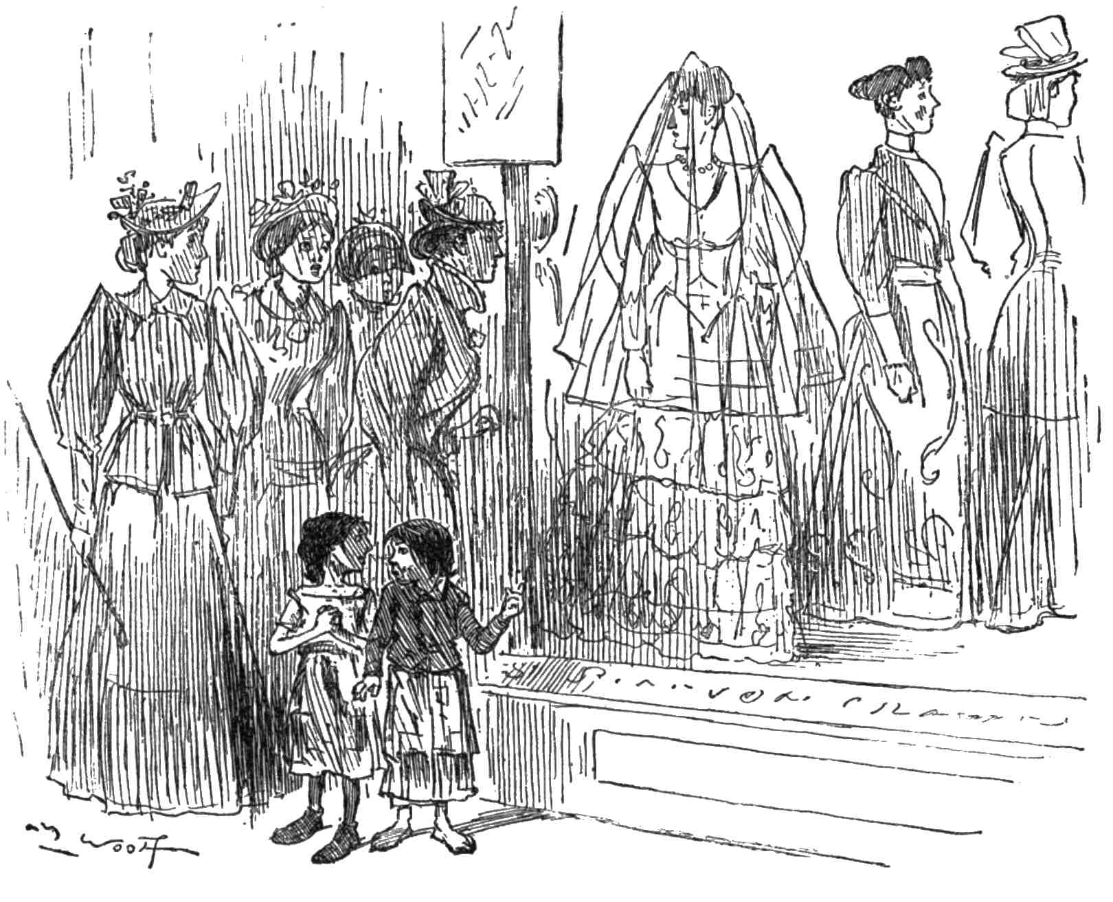 “Clara, it’s the likes o’ them w’ot makes so many of us young bodies ole maids. The fellers gets askeered o’ the milliners’ an’ the dressmakers’ bills.”