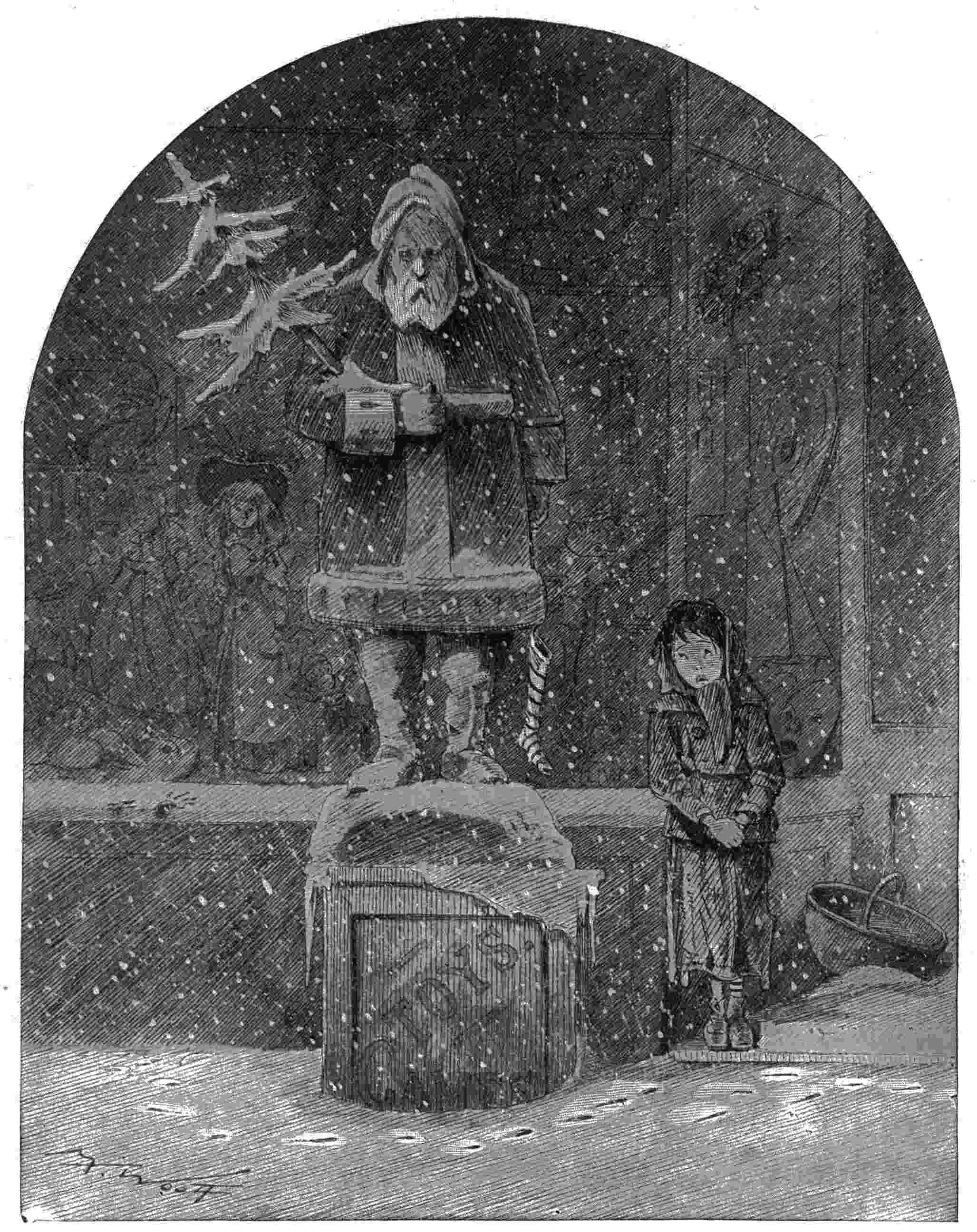 “If yer please, mum, Santa Claus can’t get into our room ’cause they ain’t no chimley, an’ I want ter know if yer won’t hang up this stockin’ when yer a-hangin’ up the children’s, an’ I’ll call in the mornin’ fer it.”