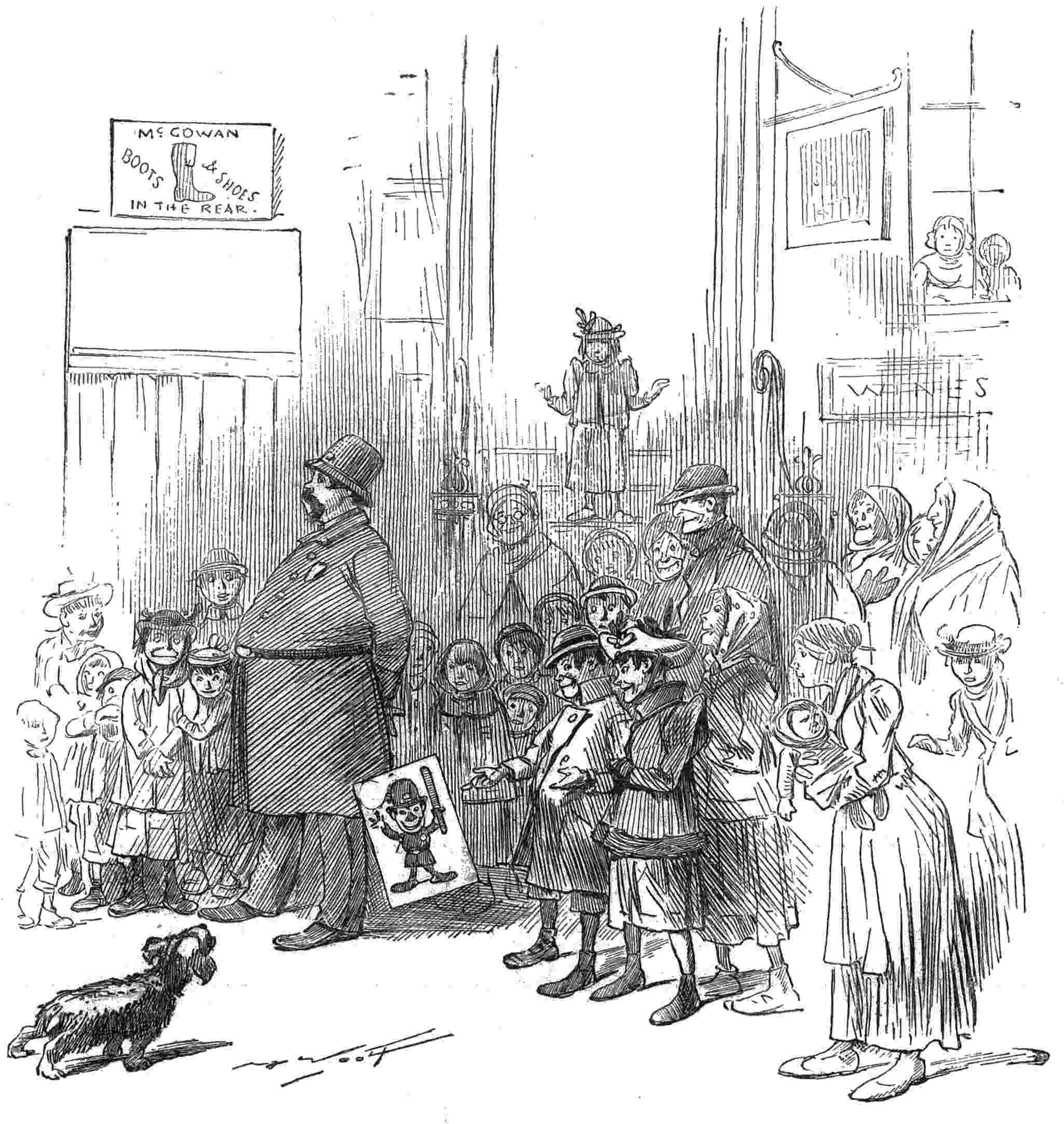 “I tell yer Sandow isn’t in it wid him. He takes de kid an’ chucks him in de air, den he turns a han’spring an’ drinks a can o’ cold tomatter soup afore de kid reaches de groun’.”