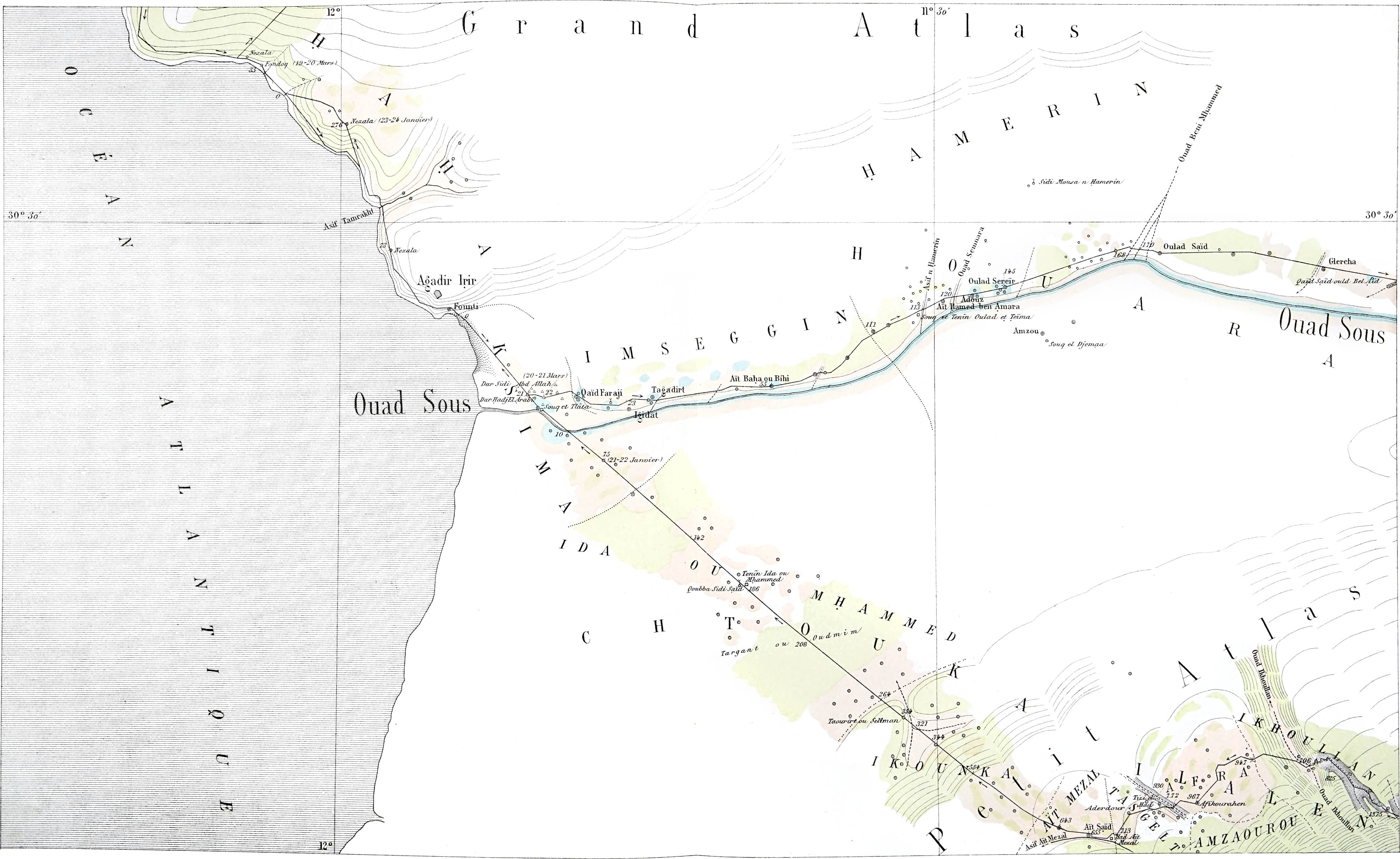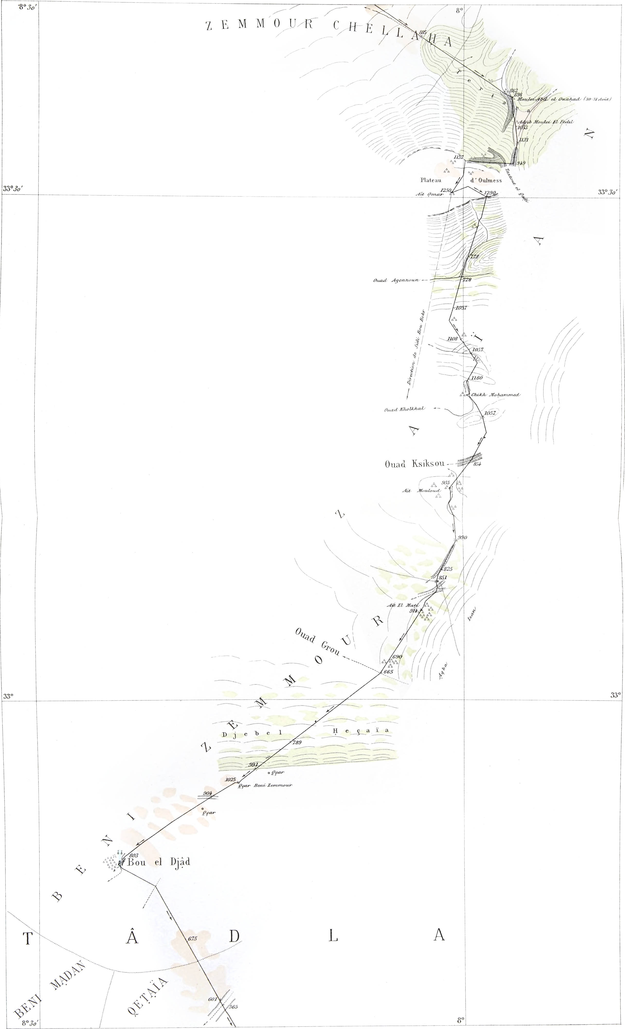 | Extrait du Bulletin de la Société de Géographie | Vicomte Ch. de Foucauld. Reconnaissance au Maroc Pl. XXI. | du 1er. Trimestre 1887. |
