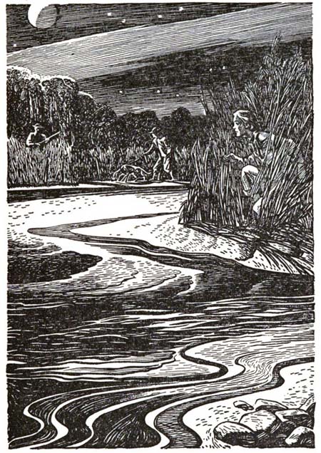 An hour crept by. Somewhere off in the woods back of the town a fox barked, and hound dogs answered with a frenzy of baying. A tipsy roisterer went past, mouthing a river song. Then gradually the noises of the night subsided, and Tad dropped off to sleep.