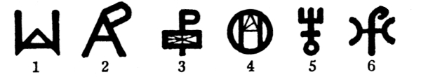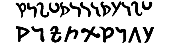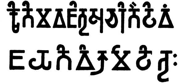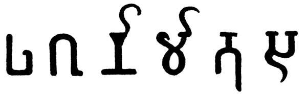 [7] Brāhmī (Fig. 1), Phœnician in origin, was the native script of Northern India, and was written from left to right. Kharoshṭhī (Fig. 2) was a derivation from the Aramaic script, and was written from right to left; it is believed to have been introduced during the Persian domination of Western India, and continued in use on the North-West frontier until about the fourth century A.D.