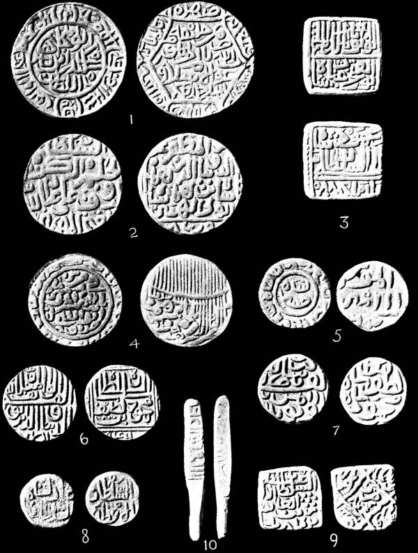 [50] Two gold coins of ’Alāu-d-dīn Muḥammad are the earliest known Muhammadan coins of this shape. Cf. Num. Chron., 1921, p. 345.
