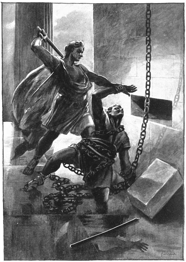 The story is that when the Trojan walls were completed, three dragons appeared and rushed upon them to test their strength. The two dragons which attacked those parts of the walls built by the celestial associates of Æacus had their heads broken for their pains, but the one which flew at the mortal’s share of the work made a hole in the wall which let it into the city. Apollo at once prophesied that Troy would eventually fall through the hands of the Æacids, which prophecy, of course, proved true. Whether this failure had anything to do with the future of Æacus or not, it would be difficult to say, but the fact is that after his death he became one of the three judges in Hades, with special jurisdiction over the[Pg 30] Europeans, which necessarily insured his being overworked until the end of time.