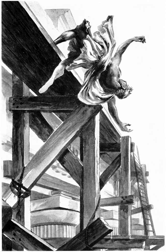 It is upon Dædalus that responsibility must rest for the first introduction of jealousy into the personality of[Pg 31] artists, a vice, by the way, which they have never been quite able to shake off from his time to the present. Dædalus was rather sorely afflicted with this unfortunate trait, and to its early exhibition is due much of his subsequent misfortune. It was in connection with his devotion to sculpture that his jealousy first involved him in trouble. He became very expert as a carver generally, and undertook to instruct his nephew Perdix in the art. In due time and under the careful tutorage of his uncle, Perdix also became proficient, and in a moment of inspiration is said to have invented that very useful tool of the mechanic, the saw. This it was that excited Dædalus, who, in a fit of jealous rage, threw his nephew over the Pelasgic walls of the Acropolis, killing him instantly as he supposed.