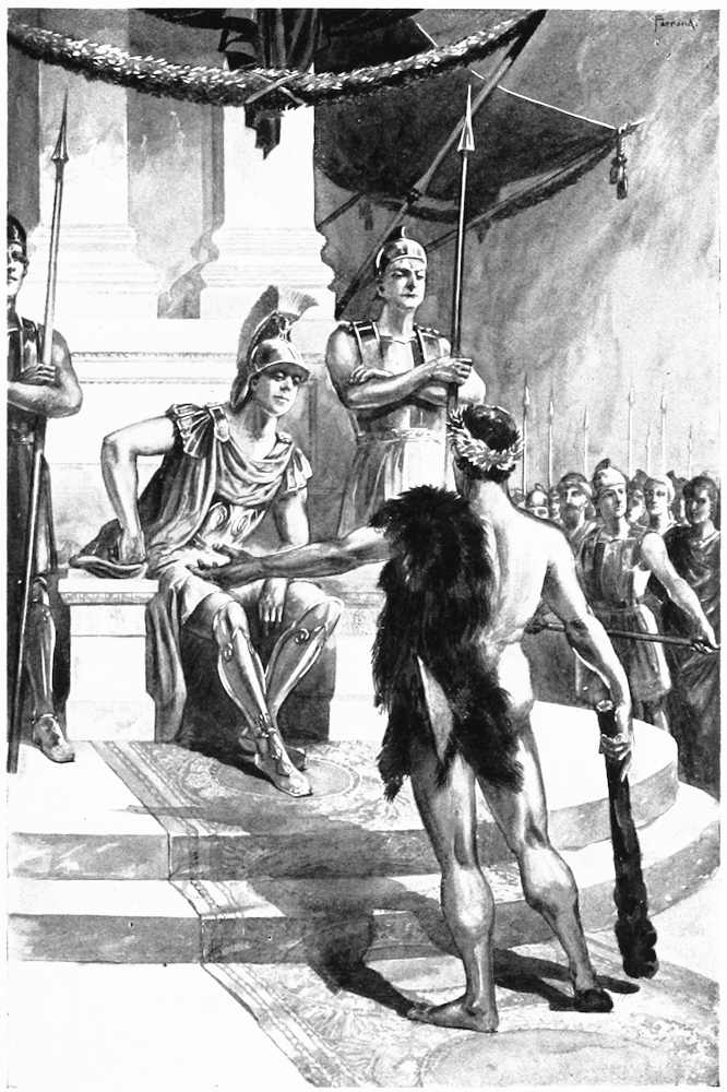 His very introduction into the notice and attention of his distinguished fellow-countryman would tend to prove that Dinocrates was a person of expediency, if nothing else. Let Vitruvius tell the story: “Dinocrates, the architect, relying on the powers of his skill and ingenuity, while Alexander was in the midst of his conquests, set out from Macedonia to the army, desirous of gaining the commendation of his sovereign. That his introduction to the royal presence might be facilitated, he obtained letters from his countrymen and relations to men of the first rank and nobility about the king’s person, by whom, being kindly received, he besought them [Pg 165]to take the earliest opportunity of accomplishing his wish. They promised fairly, but were slow in performing, waiting, as they alleged, for a proper occasion. Thinking, however, that they deferred this without just grounds, he took his own course for the object he had in view. He was, I should state, a man of tall stature, pleasing countenance and altogether of dignified appearance. Trusting to the gifts with which nature had endowed him, he put off his ordinary clothing, and, having annointed himself with oil, crowned his head with a wreath of poplar, slung a lion’s skin across his left shoulder, and, carrying a large club in his right hand, he sallied forth to the royal tribunal, at a period when the king was dispensing justice.
